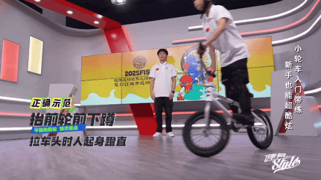 海豚跳的时候,一定要先抬起前轮,前轮抬起来过后,再带着后轮。需要注意的地方是,练习者一定要带着车把向上跳,而不是两个轮子同时起跳。