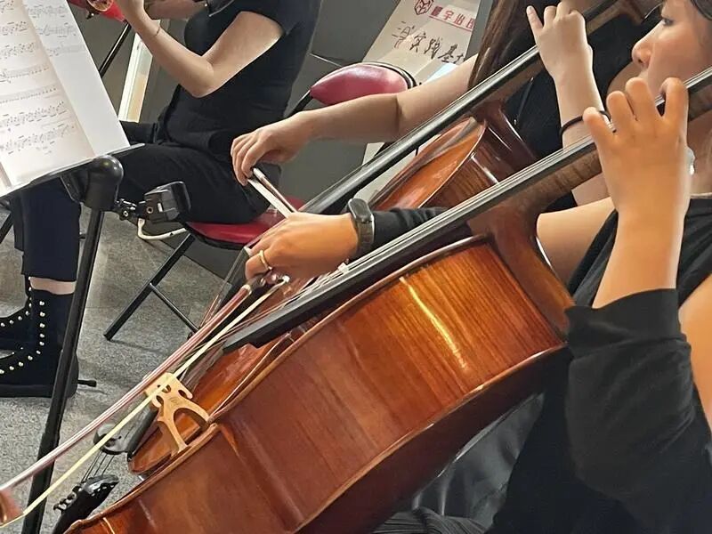 不少人吃完午饭便循着琴声而来,轻手轻脚地在座椅上坐下。有人还不忘在边上点上一杯咖啡,调整姿势,让自己靠得更舒服些;有人掏出手机,却不是刷消息,而是对着舞台上乐手专注拉动琴弓、指尖在琴弦上灵活跳跃的神情按下快门。