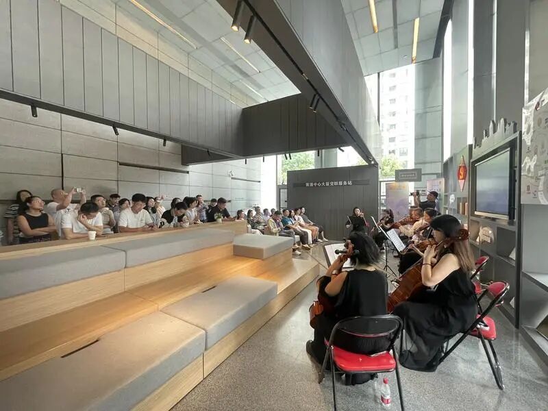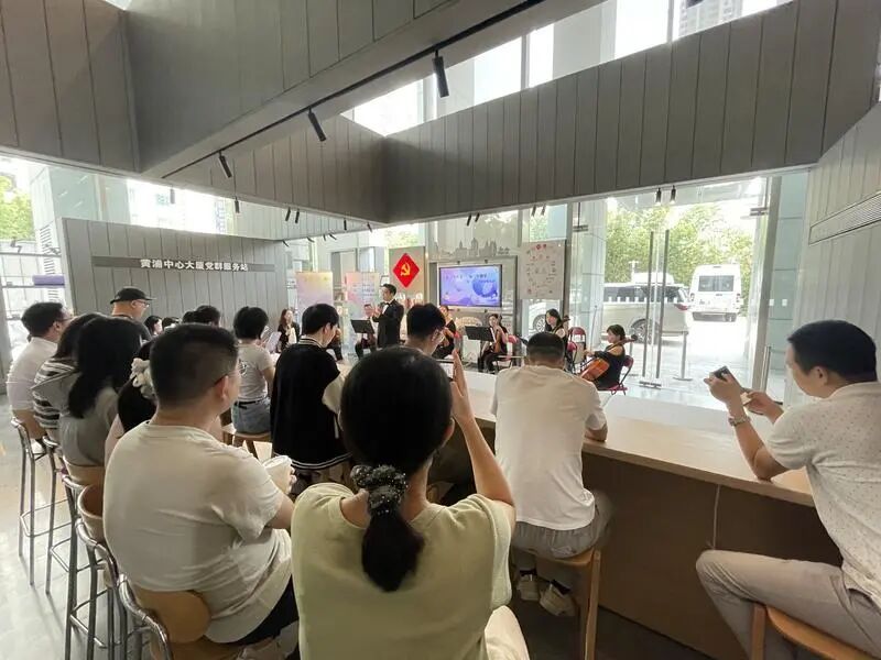 音乐会打破了“艺术演出需去专业场馆”的固有认知,将高品质提琴盛宴搬进楼宇一楼大厅,用“不折腾、轻量化”的形式,契合了职场人碎片化的午休时间;它也是黄浦为人才打造的“心灵补给站”——不仅用年轻人喜爱的旋律精准缓解职场压力,更以音乐为媒介,让原本陌生的楼宇职场人有了共同的情感联结,潜移默化中构建起温暖的楼宇文化。它让“人才关怀”不再是抽象的概念,而是藏在这一小时的提琴声里,藏在楼宇间触手可及的美好里,让“人才”与“楼宇”的联结更紧密、更有温度。