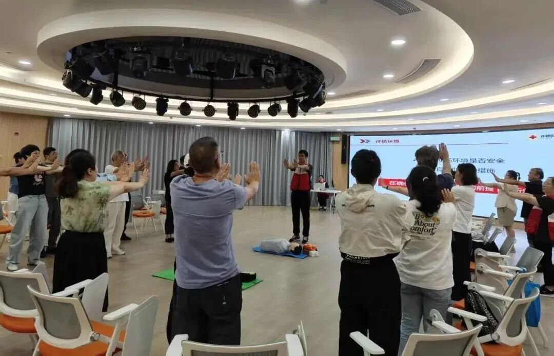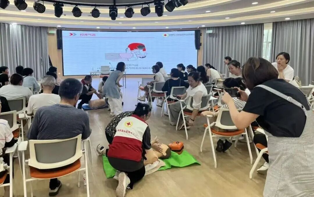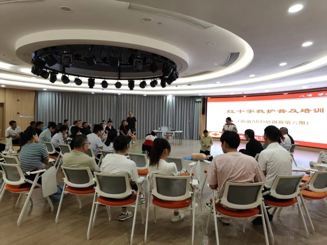 为了让AED真正“用起来”,友谊路街道社区管理办联合街道红十字会面向AED点位负责人、社区志愿者、物业工作人员等群体开展了应急救护培训,系统讲解心肺复苏操作步骤、AED工作原理与使用流程。
