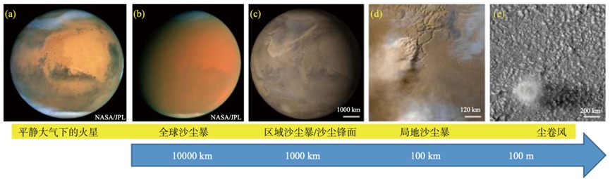 (d)Mars Color Imager 观测的沙尘暴照片;