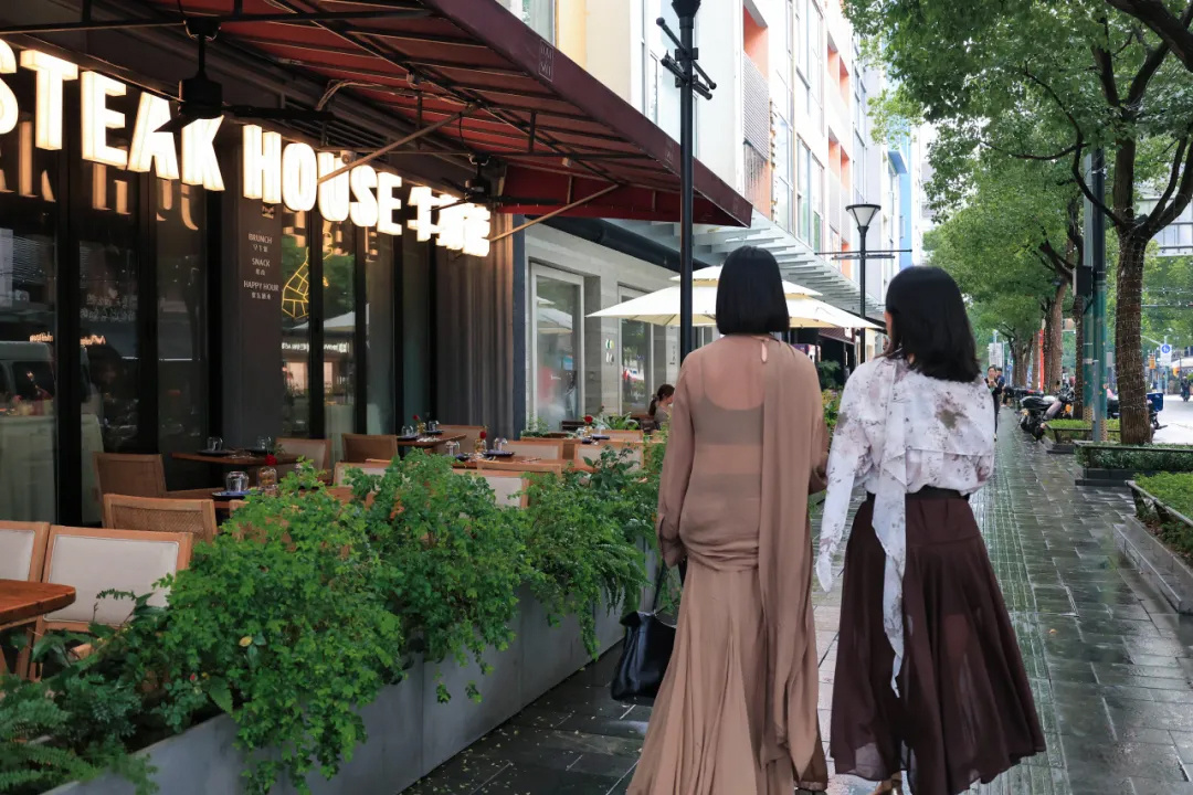 每天店里的生意忙完后,姐妹俩就会去对街的咖啡店买上一杯咖啡“续命”,店铺颇有格调的风格和轻松的社交氛围,能让两人放松舒心。而在大学路上,这样的店铺还有很多,姐妹俩常去的牛排馆、川菜馆、小酒馆,都是创业之余实现味蕾和精神双重享受的重要去处。