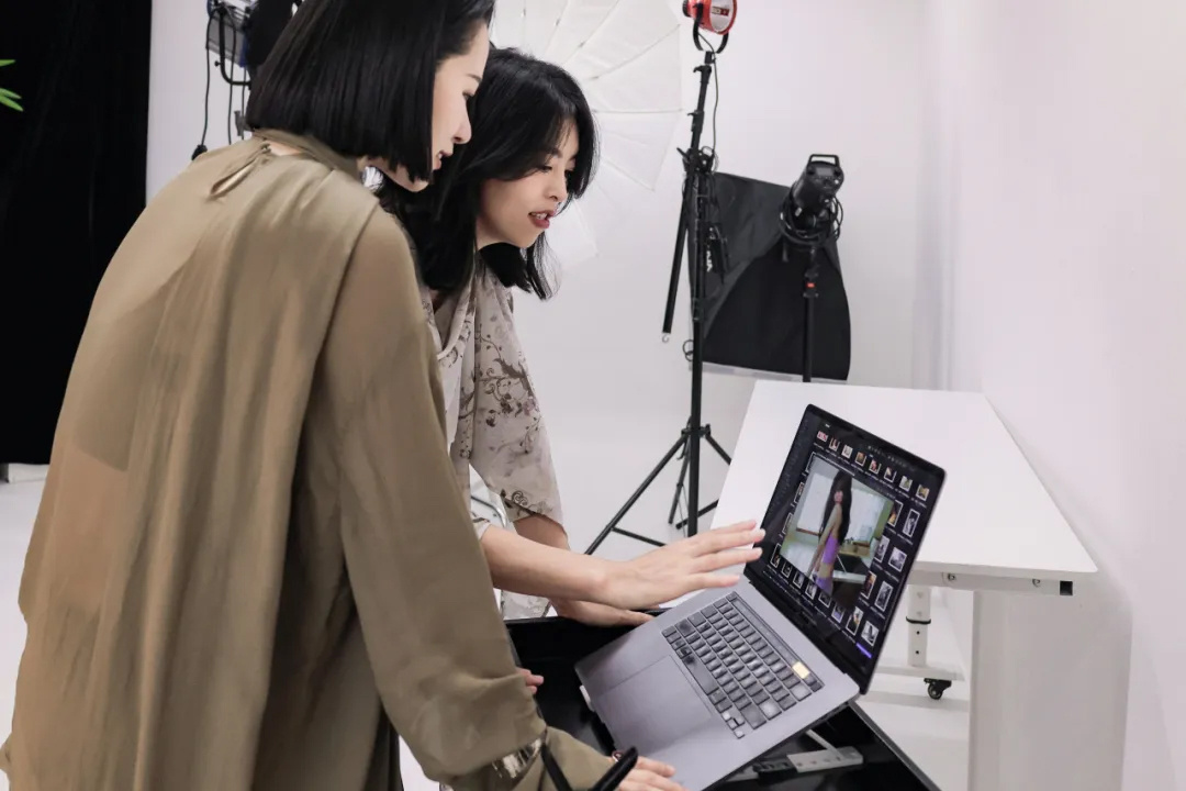 新款陈列架前,创始人Grace正在整理当季新品,一旁的摄影棚内,她的“工作搭子”Anna正在准备新一季的服装拍摄。