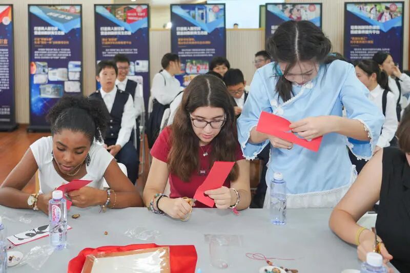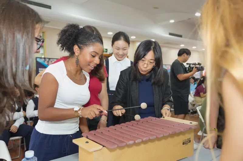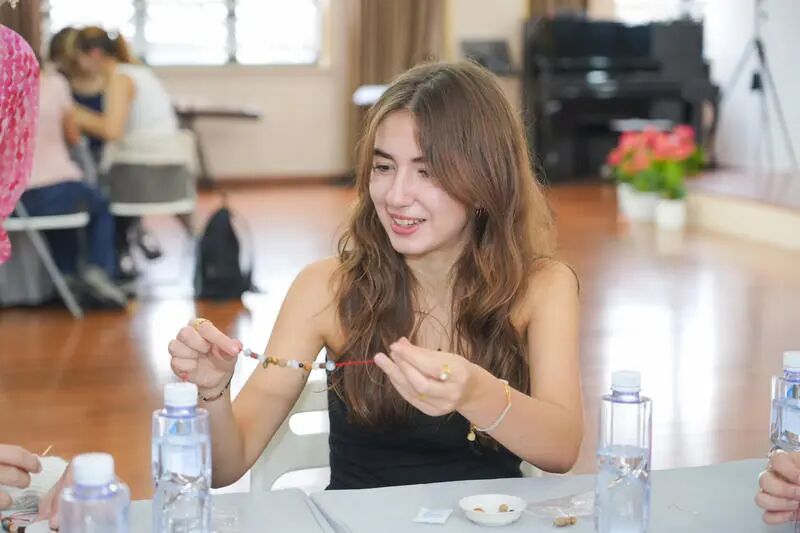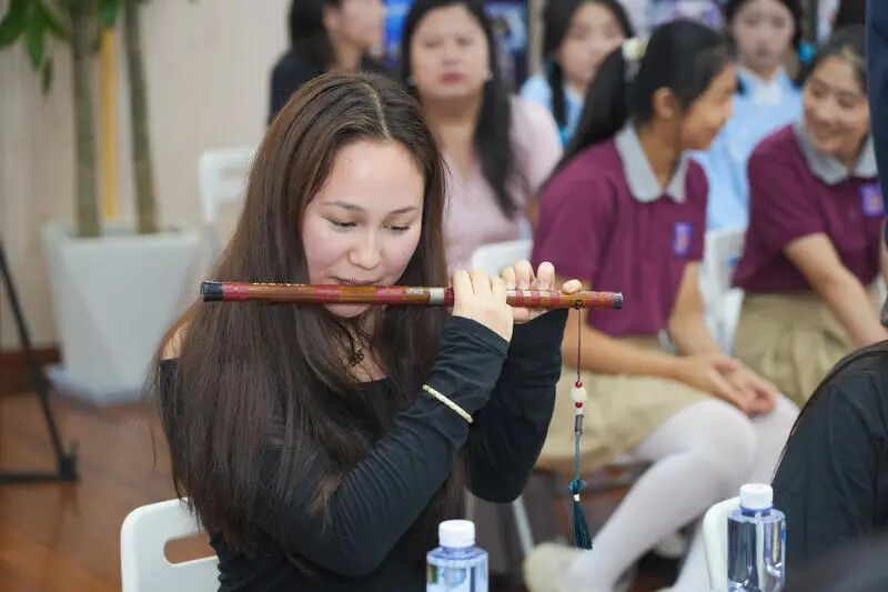 初次交流,两校师生就已结下了深厚的友谊。学校大礼堂里,艺术表演、民乐互动、国粹体验等环节瞬间拉近了双方的距离:非遗海派剪纸《翦彩为人起晋风》、竹笛演奏《茉莉花》、中药手串制作,法国师生还饶有兴致地体验了一番富有魅力的中国民族乐器的演奏。音乐无国界,在悠扬的《茉莉花》旋律中,两国师生齐声哼唱,共同编织出一幅中法文化交流的和谐画卷,让友谊的种子在彼此心中生根发芽,期待未来更多的美好相遇。