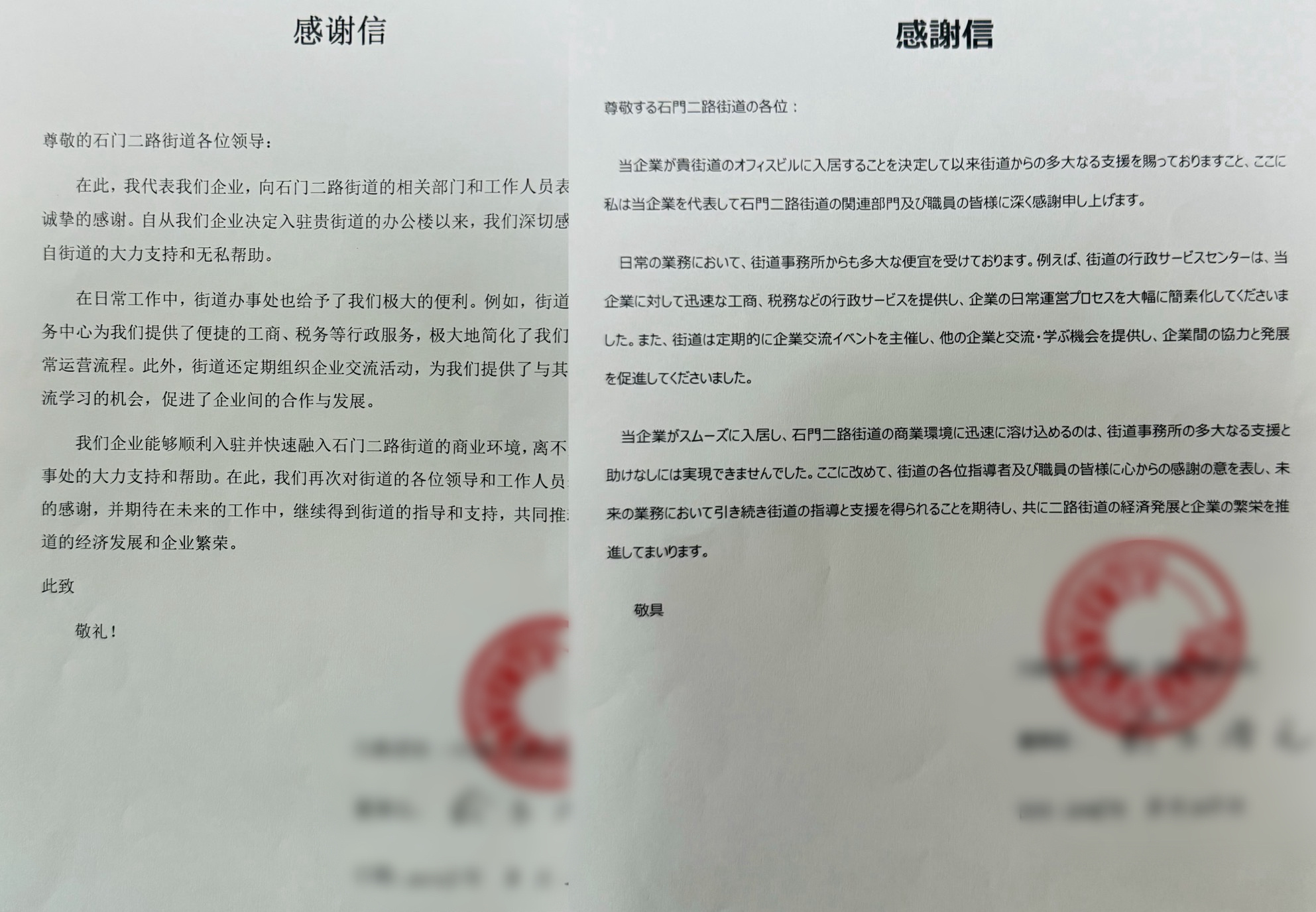 这套分层级、多维度的服务网络,在某日企总部的落户过程中得到充分验证。作为首批入驻上海利园的外资企业,企业董事长在感谢信中特别提到:从工商变更的提前介入到服务的无缝衔接,再到各类定制化支持,我们企业能够顺利入驻并快速融入石门二路街道的商业环境,离不开街道的大力支持和帮助。街道的服务始终与我们企业发展同频共振。