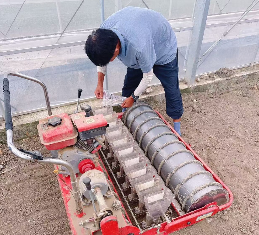 在位于外冈镇泉泾村的上海绿望蔬果产销专业合作社的种植基地内,小型拖拉机轰鸣作响,正在进行深翻与平整作业,空气中弥漫着新翻泥土的清新气息。播种机在农户熟练地操作下匀速前进,一粒粒饱满的鸡毛菜种子被精准地播撒进松软的土壤中。