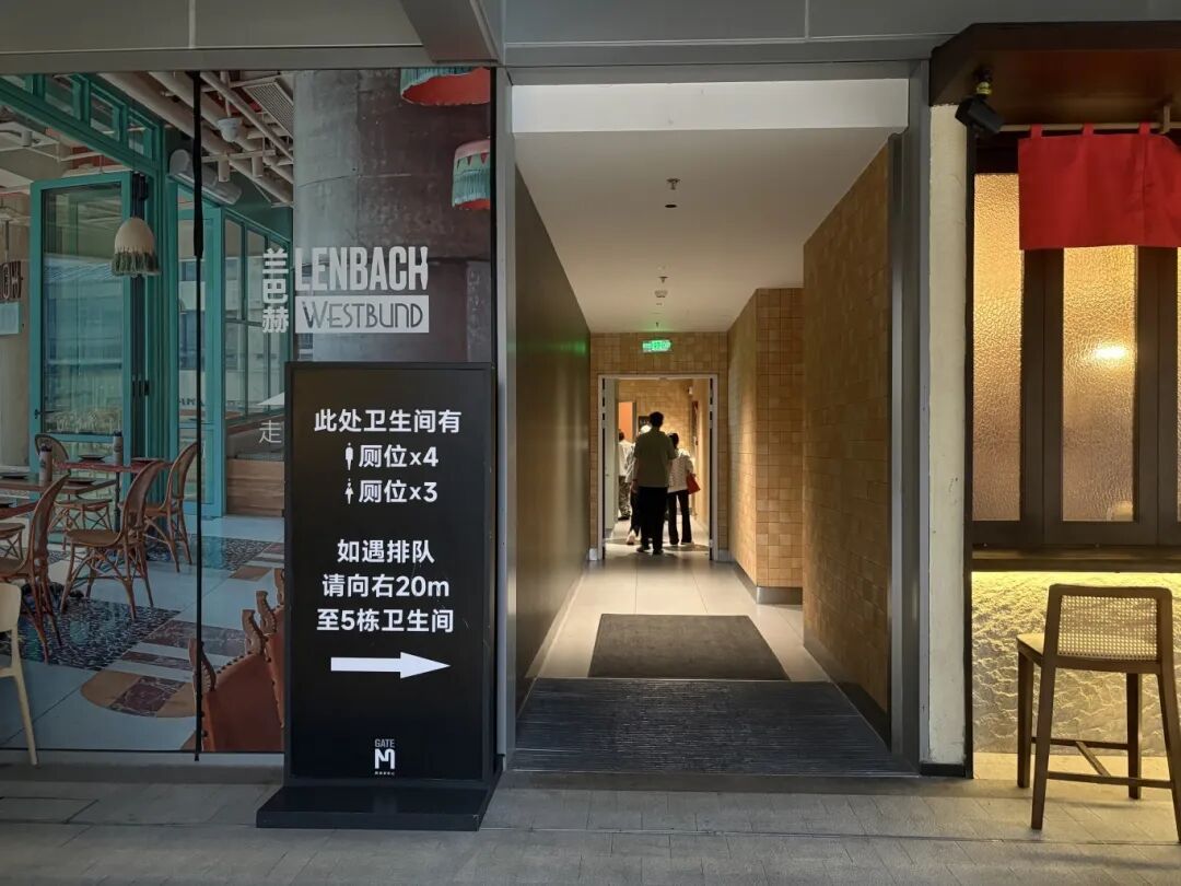 卫生间排队拥堵是此前市民反馈的另一大痛点。为快速缓解这一问题,西岸梦中心也完成了全域卫生间引导优化:在北区2、4号楼设置立牌,引导顾客前往B1层及西岸大剧院一层卫生间;北区6号楼通过立牌指引至3、5号楼二层卫生间;南区则引导客流至CMG融媒影城一、二层卫生间,通过科学分流提升卫生间使用效率。“之前卫生间排队时间有点久,现在跟着指示牌能快速找到人少的卫生间,节省了不少时间。”市民李女士说道。