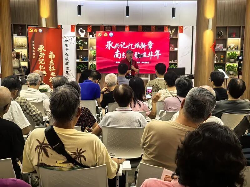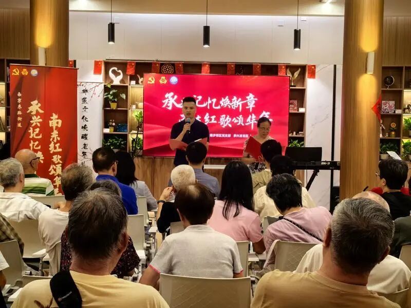 这场名为“承兴记忆焕新章,南东红歌颂华年”的音乐党课,由南京东路街道妇联、南步街区党支部与原点街区党支部、承兴居民区党总支联合策划。活动尚未开始,现场已座无虚席。记者看到,工作人员虽然不断找来更多椅子,仍难满足源源不断赶来的党员、居民。承兴居民区党总支书记魏巍感慨:“考虑到天气不好、老党员住得远、年纪大,我们原以为人会少一些,实在没想到大家的热情这么高。”