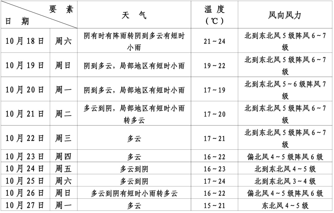 据最新气象资料分析:受冷空气影响,10月18—22日有持续 大风,气温较前期明显下降。