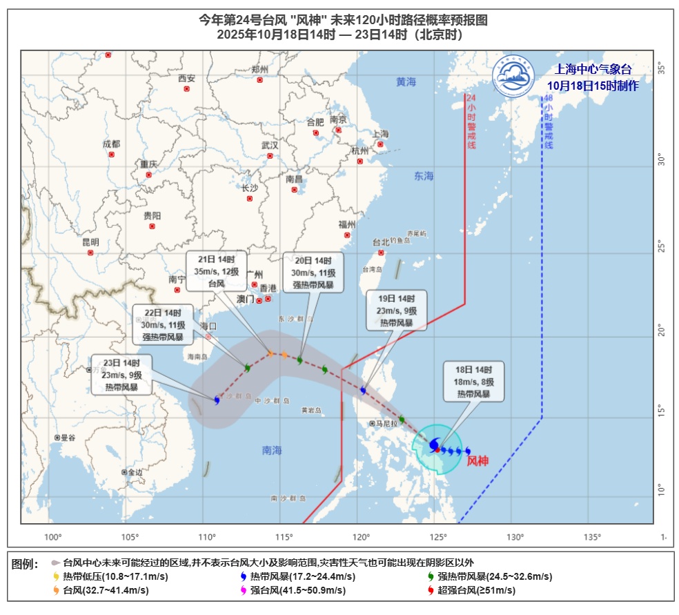 今年第24号台风“风神”14时位于菲律宾马尼拉东偏南方向的洋面上,预计“风神”将以每小时20-25公里的速度向西北方向移动,强度逐渐增强,对本市无直接影响。