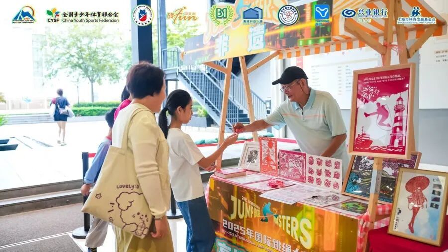 聚光灯下,世界级选手展现着跳绳的极致魅力;在高境的日常中,跳绳早已成为一种深入肌理的文化基因和生活方式。宝山高境“花样跳绳”被成功评定为第十批宝山区非物质文化遗产 “传统体育、游艺与杂技”代表性项目,标志着这项运动实现了从单纯的体育项目到文化瑰宝的价值维度的根本性拓展。此外,为本次赛事准备了独特的本地非遗周边纪念品,包括本地艺术家设计制作的赛事主题剪纸作品,以及承载中国跳绳发展史的纪念徽章。赛场内外的舞龙舞狮、非遗市集等传统元素,更为赛事注入了深厚的文化底蕴,营造出浓郁的传统氛围。回顾高境与跳绳的缘分,可谓源远流长。自上世纪九十年代起,高境便开始了系统性的推广之路。精心开发的《轻松学跳绳》课程,不仅走进了全市160所学校,更辐射至全国14个省市,惠及数十万青少年,形成了独特的“文化+体育”双修模式。核心示范校高境科创实验小学的课间,总是一片绳影翩跹的景象,学生们书包里必备一根跳绳。这份坚持结出了硕果:十余年间,该校学生在各级赛事中累计斩获1625枚奖牌,其中包含218个冠军,更曾8次打破世界纪录。