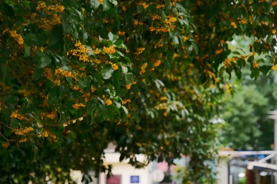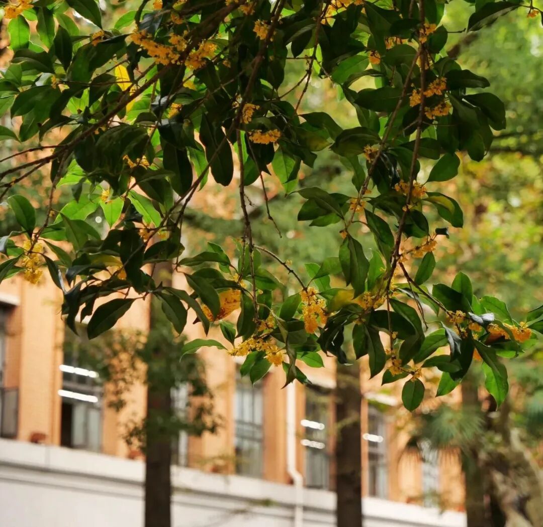 盼望着,盼望着等过了夏末的余温等过了初秋的晚风同济的桂花终于携香赴约今年虽迟了些却把温润的甜意洒满校园漫步同济染满身花香