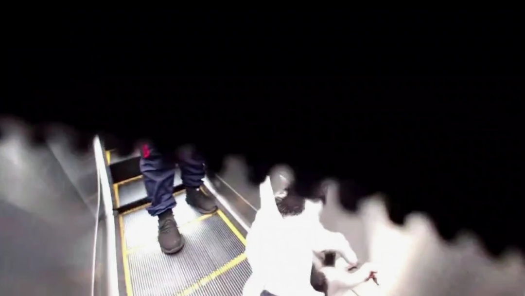 当日,人民广场站民警接到110报警后,第一时间做出反应。他们迅速联系车站维保人员,同时以最快的速度赶往现场。到达现场时,民警看到手扶电梯已被紧急按停,一只可怜的小猫正被困在电梯夹缝中间,它的两只脚被紧紧卡住,因疼痛和恐惧而不断挣扎。现场还能听到小猫微弱又急切的叫声,仿佛在向人们求救。