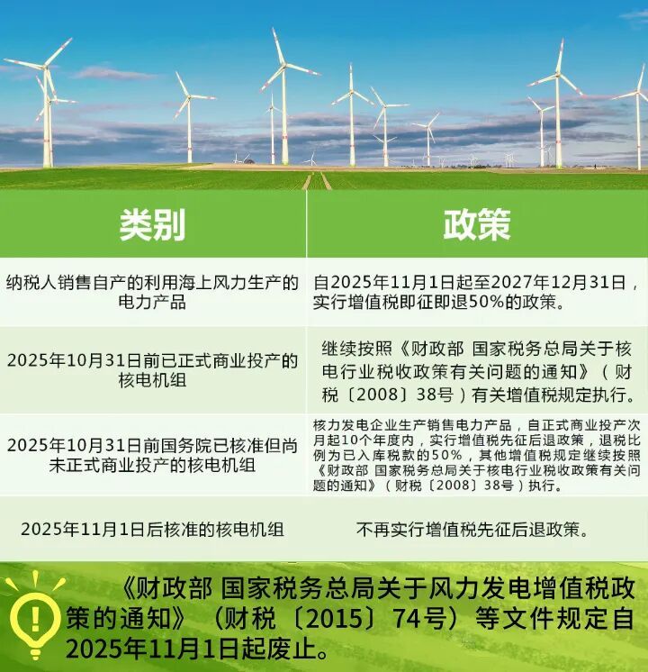 《财政部 海关总署 税务总局关于调整风力发电等增值税政策的公告》(财政部 海关总署 税务总局2025年第10号)