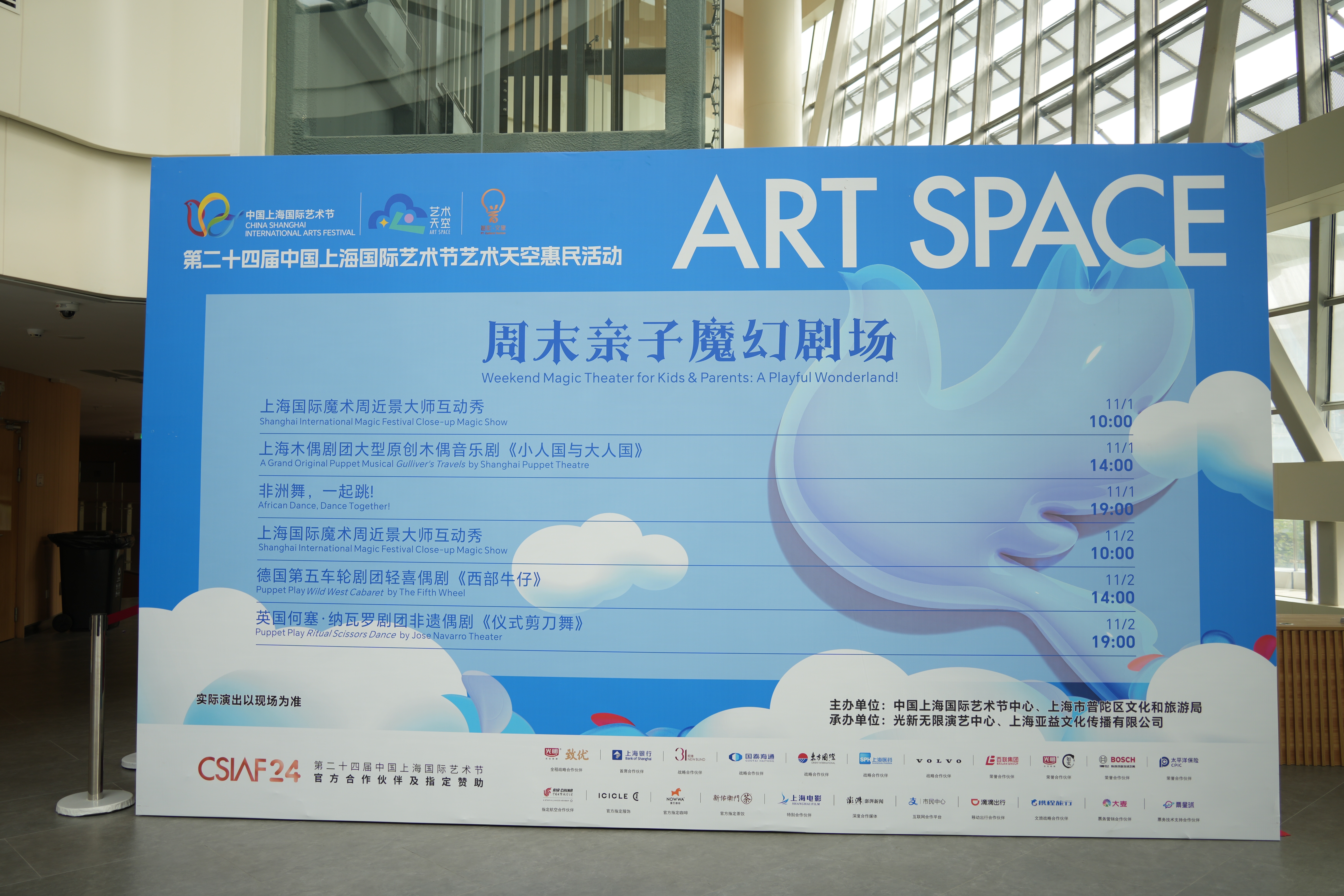11月1日,第二十四届中国上海国际艺术节核心板块“艺术天空”——“周末亲子魔幻剧场”在普陀区光新无限演艺中心欢乐启幕。来自中国、德国、英国、喀麦隆等8个国家及地区的演出团体,以30元、50元的公益票价连演两天,首日演出即收获满堂彩,为申城家庭带来一场跨越国界的魔幻艺术之旅。
