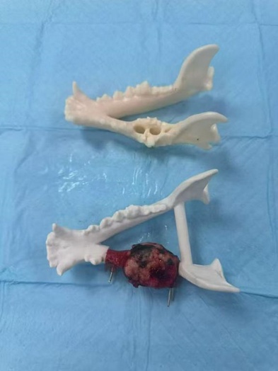 当宠物下颌骨罹患恶性肿瘤,其生活质量和生存能力会受到严重威胁。传统治疗方案是进行下颌骨全切或部分切除,虽能有效去除病灶,但术后动物往往因下颌缺失而面临舌头外露、无法自主进食、口水持续外流等问题,生活质量显著下降,家庭护理负担也极其沉重。