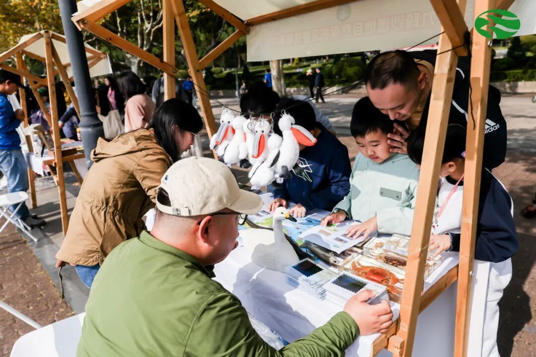 现场的爱“沪”野生动物生态市集吸引不少市民游客驻足,参与知识问答、游戏互动。26个摊位各有主题,通过科普知识学习、普法宣传折页发放、标本展示、游戏互动等沉浸式体验,激发市民的好奇心与求知欲,增强市民亲近自然、热爱自然的热情。
