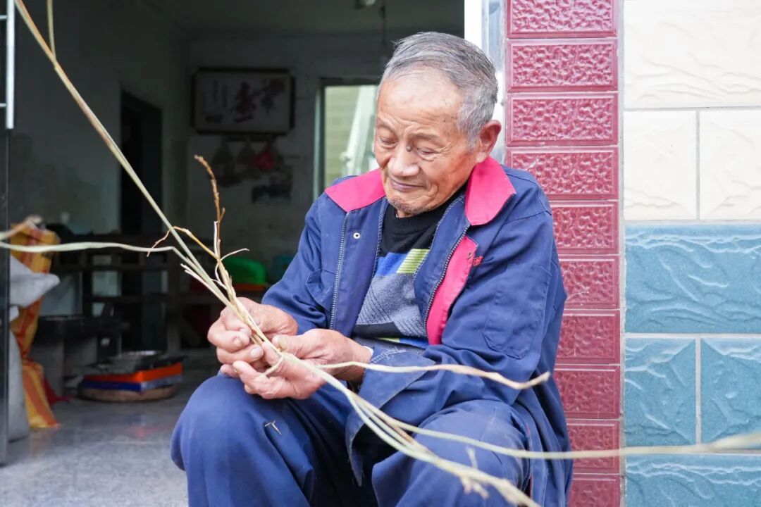 午后的阳光洒满院落,沈仁忠正精神抖擞地坐在木凳上仔细筛选着今年的新稻草。他那双布满岁月痕迹的手,熟练地拈起一根根稻草,在阳光下端详。“要选色泽金黄、挺直均匀的,”老人操着一口本地口音说道,“太老的容易脆,太嫩的不够韧性。”这些在旁人眼中只能还田肥地的稻草,在他这里都是珍贵的创作素材。