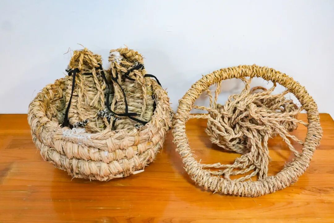 稻草编织品不仅是实用器物,更承载着一代人的集体记忆。“很多人都忘了,之前,我们老底子就是用稻草这种最自然的材料过日子的。”在沈仁忠的记忆中,稻草编织曾是再寻常不过的生活场景。在塑料制品尚未普及的年代,稻草编织品是农村生活中不可或缺的存在。从实用的菜篮、箩筐到精致的装饰品,稻草以其柔韧、可降解的特性,成为最环保的生活材料。