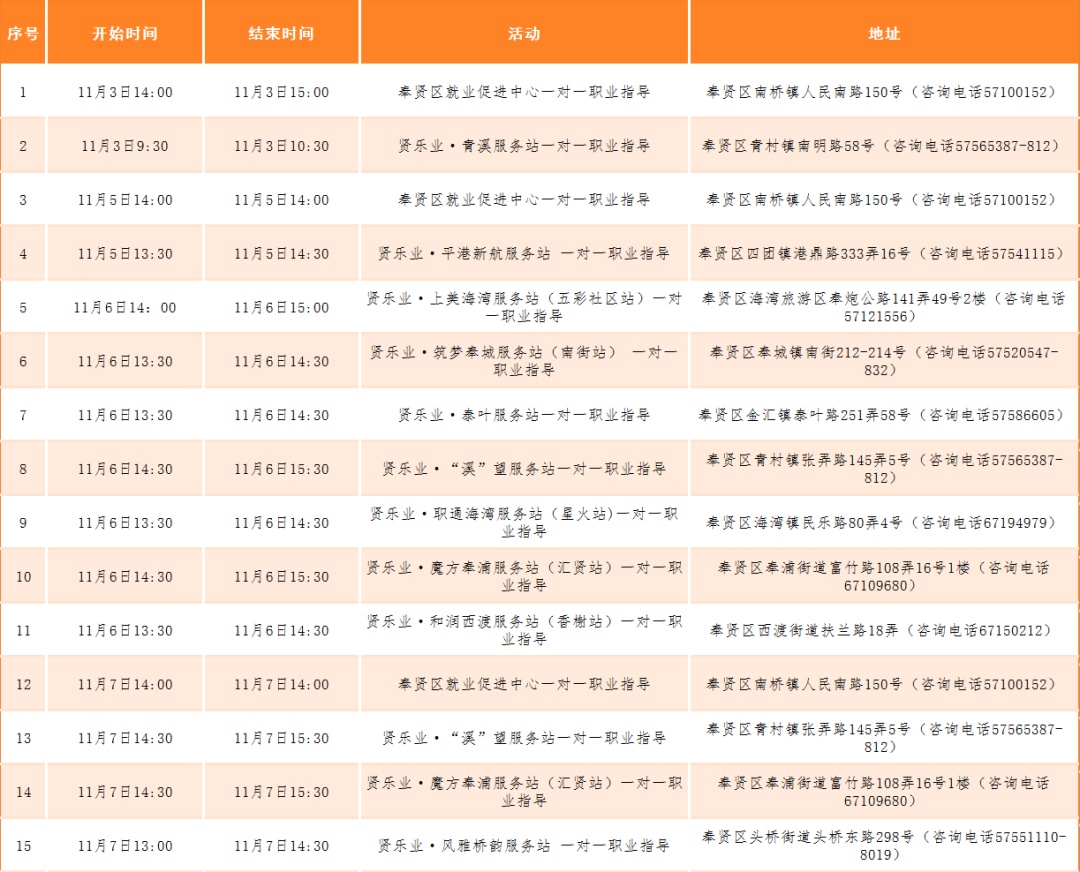 为助力重点群体实现就业,奉贤区“15分钟就业服务圈”服务站点各类活动安排新鲜出炉,为你的就业创业之路暖心护航。下周活动抢先知,精彩别错过~