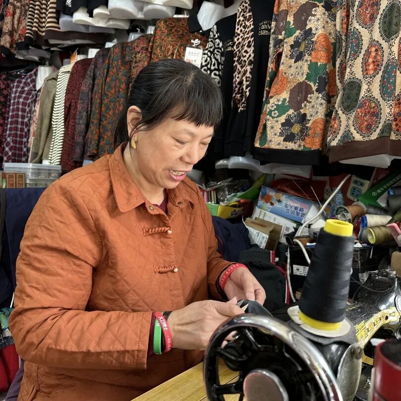 王阿姨今年61岁,手里的针线已经“穿梭”了三十多年。一口流利的本地话,让来缝补、买衣服的老人们格外喜欢和她聊天,没人能听出她的老家其实在江苏。常来的张阿姨总说:“王阿姨的针脚又细又匀,补好的衣服根本看不出痕迹,比新买的还耐穿。”刚取完缝补衣物的李大爷也念叨:“不光手艺好,人还热心,有时候多聊两句,她还会主动帮忙修修衣服上松动的扣子。”