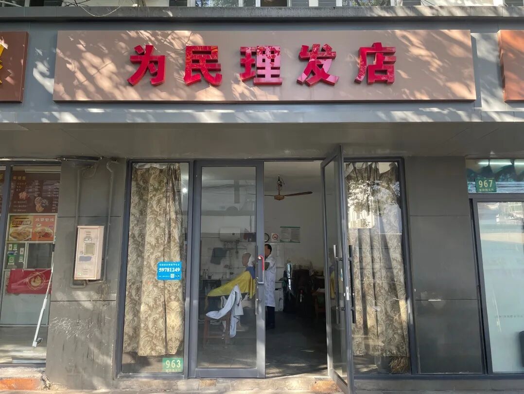 在重固镇大街963号,一家老式“剃头”店静立街巷。自1979年起,戴师傅便在这里坚守,用一把剪刀、一柄推子、一把剃刀,为居民们“改头换面”。“为民理发店”的门牌、整齐排列的传统理发工具、复古座椅,每一处都镌刻着时光的痕迹。