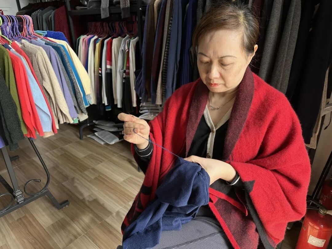 福中路上的“郁金香羊绒批发”店,店主陶女士出身纺纱厂,后自办工厂,始终扎根生产一线。创业初期客源波动、工人难留,她咬牙熬过最难时光,如今依旧早出晚归,用心打磨每一件羊绒衫。她选料只挑细腻优质的羊绒,纺线、编织工艺严苛,成品糯滑亲肤,贴身穿毫无不适感。不少老顾客念叨:“孩子从幼儿园穿到高中,每年冬天必来订,软乎乎从没过痒,跟着孩子长大的衣服,放心!”遇到顾客的绒衫有小破损,她还会主动帮忙免费缝补,针脚细密得几乎看不出痕迹。