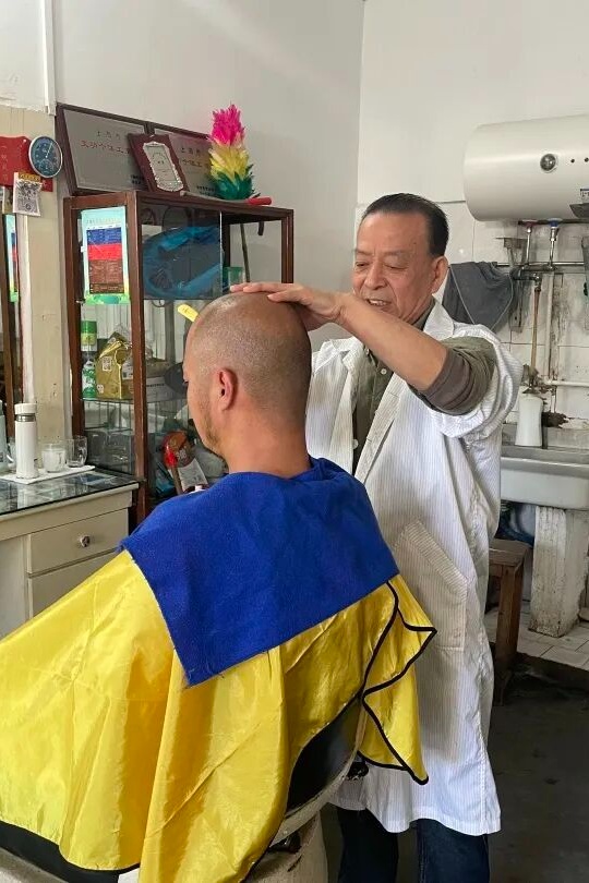 戴师傅手艺精湛利落,理发动作干脆洒脱,片刻便为顾客塑造清爽造型。刮面、剃须等老技艺在此延续,原汁原味的触感让人回味。四十余载光阴流转,他以匠心服务了一代又一代居民,既守护着老派理发技艺的温度,也珍藏着邻里间的温情回忆,成为小镇上一道治愈人心的风景。