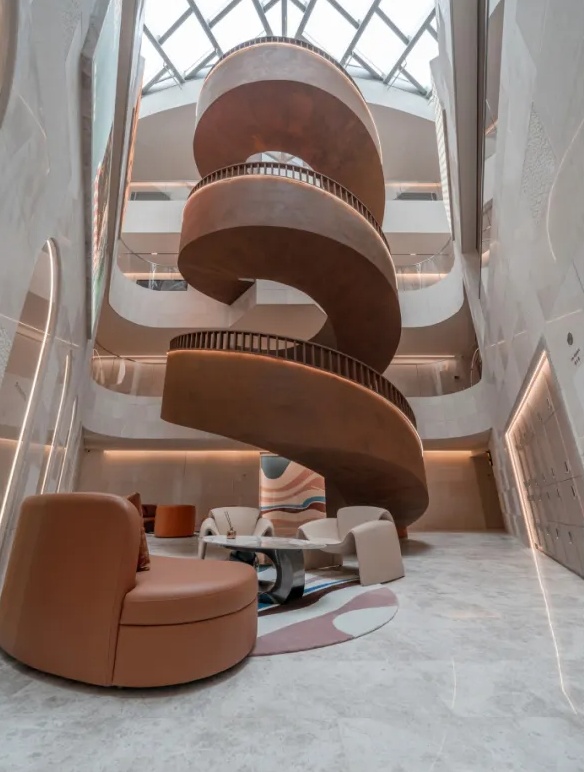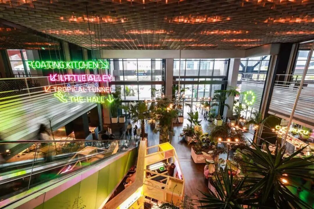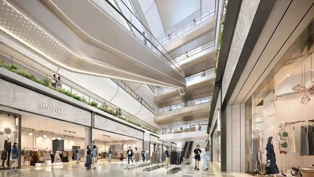 同时采用了退台式外立面,室内多中庭的设计,通过屋顶、室内外的联动,让顾客在整个动线之中充满新鲜感。