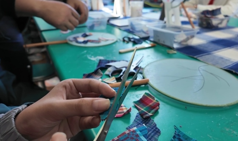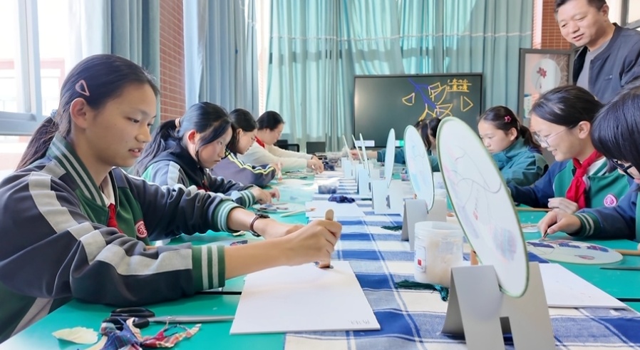 崇明土布纺织技艺历史悠久,可追溯至明清时期,是劳动人民在长期生产生活中积累的智慧结晶。在上海师范大学附属崇明正大中学,美术老师刘健带领学生,取材传统土布,经过巧思妙手,制作出精美的布贴画作品,让这项非遗焕发出新的生命力。 教室中,一堂别开生面的布贴画课程正在进行。眼下正值深秋,逐渐泛黄的银杏叶,成了最应景的创作题材。大家挑选自己中意的布料,经过剪裁将其变成银杏叶的形状。再经过黏贴,把布料错落有致地装点在扇面上,一把布贴画团扇便大功告成。看着自己栩栩如生的劳动成果,同学们爱不释手,非常自豪。 “土布具有不易褪色、质地厚实、色泽淳朴的特性,充满了浓浓的乡土气息。我们的创作题材大多选择具有浓郁民风特性、能反映日常生活的画面,并充分利用现有布面的色泽和纹理,结合中国画的风格,再次创作而成。”刘健表示。 一节课下来,经过上手操作,大家对土布的纹理、颜色也有了更深的认识。“根据老师讲的深浅和大小搭配,我按照银杏的形状剪成了这个样子。真正做了土布扇子之后,感觉这是一个非常有意思、有深度的东西。”学生施忆如表示。 实践出真知。在美术老师刘健看来,对于非遗的传承,“手工制作”比“照本宣科”更有说服力。学生通过亲身思考、上手拼接,更能理解这项传统技艺的文化内核。“我妈妈是一位土布爱好者,平时也会制作一些土布的手工艺品。刘老师讲课的时候,我会有很多自己感兴趣的东西。课后,我还会上网查询资料,回家也会问我的母亲。”学生蔡紫萱表示。 在校园的布艺展厅中,陈列着往届学生的优秀作品,崇明的花鸟鱼虫、风土人情都成了大家的创作素材。“我们以促进学生的发展、提升动手能力为目标,开设这项课程。土布是崇明的特色文化,我们想把它进一步发扬光大。学生做出来的优秀作品,一方面用于展示,一方面也是校园文化的体现。”正大中学副校长刘先陆表示。 让审美感知从“被动欣赏”转向“主动创造”。开设土布贴画课程,不仅是“非遗进校园”的具体实践,更是贴合教学实践的育人创新。这项课程已成功开展多年,让学生在动手创作中提升能力、浸润文化、树立自信,实现“以美育人”“以文化人”的教育目标。 记者:施昊豪 编辑:焦倩倩