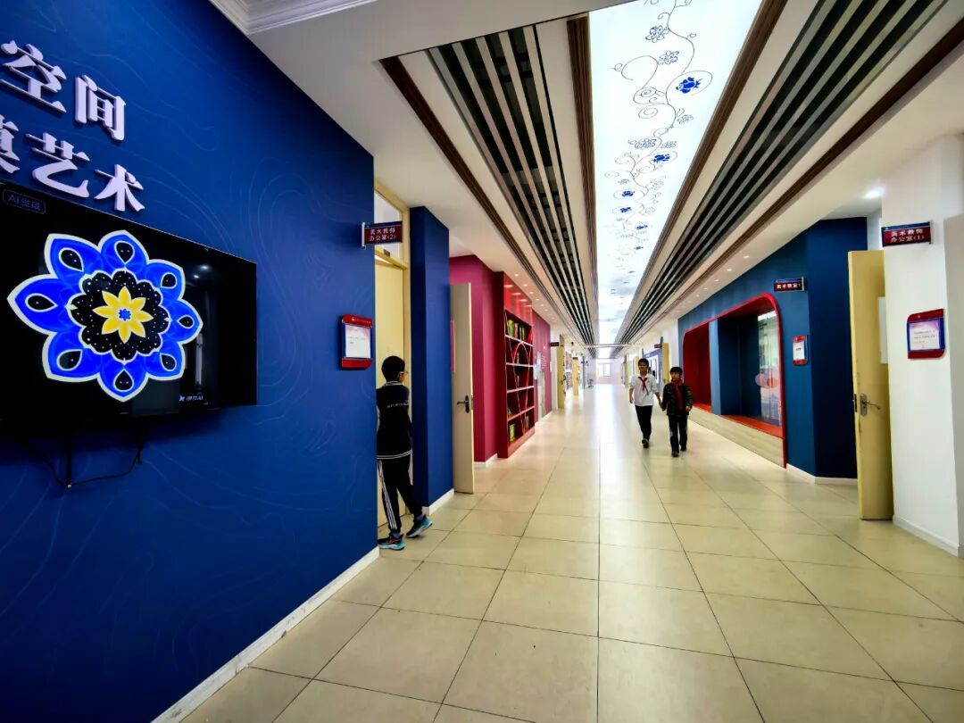 在东华附校,校园空间大变身的例子随处可见。这学期,师生联合策划的藻井纹样作品展在教学楼廊道上的艺术空间上线。学生才华展示有了舞台的同时,也为“下课去哪玩”提供了选择。