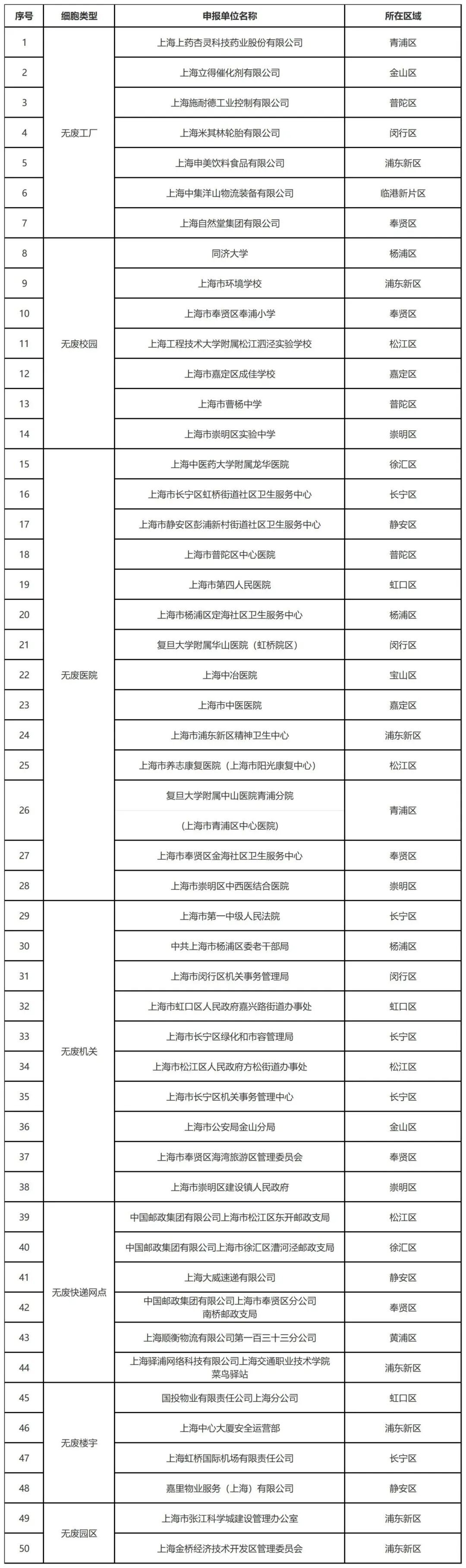 为做好“无废城市”建设优秀经验和做法的宣传推广,根据《上海市人民政府办公厅关于印发〈上海市“无废城市”建设工作方案〉的通知》(沪府办发〔2023〕2号)和《上海市生态文明建设领导小组办公室关于印发〈2025年度上海市“无废城市”建设工作要点〉的通知》(沪生建办〔2025〕6号)要求,经各单位自愿申报、各区初审推荐、市行业主管部门遴选等,形成上海市2025年度市级“无废城市细胞”典型案例名单,现予以公布。