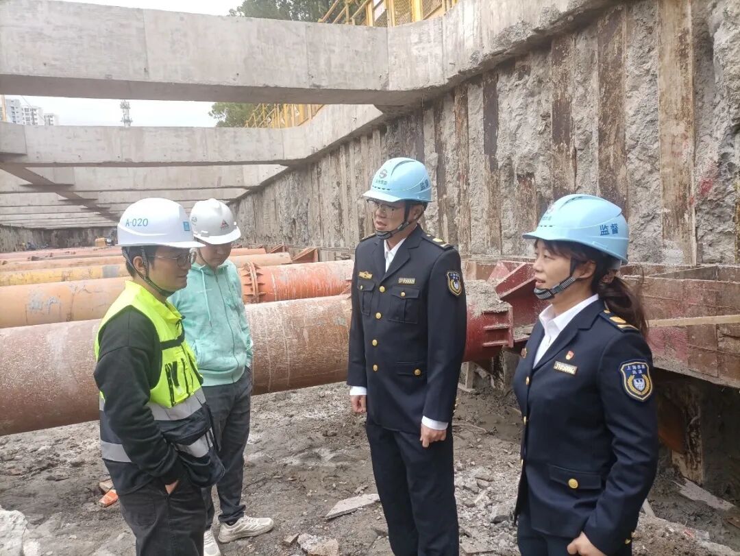 本次检查以重大事故隐患专项排查整治为重点,严格落实全员安全生产岗位责任制,聚焦深基坑、高支模等危险性较大的分部分项工程,确保主要管理人员到岗履职,严格落实文明施工要求,做好扬尘、渣土管控工作。同时,详细了解周边道路的积水情况和防汛措施落实情况,加强防汛设施的维护和保养工作,做好区域内排水管网、挂篮等清理工作,加强监督检查,确保进博会期间周边排水通畅。