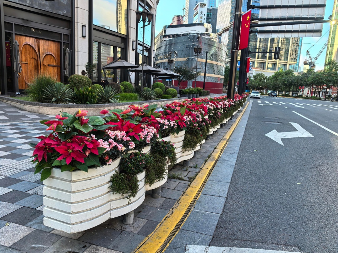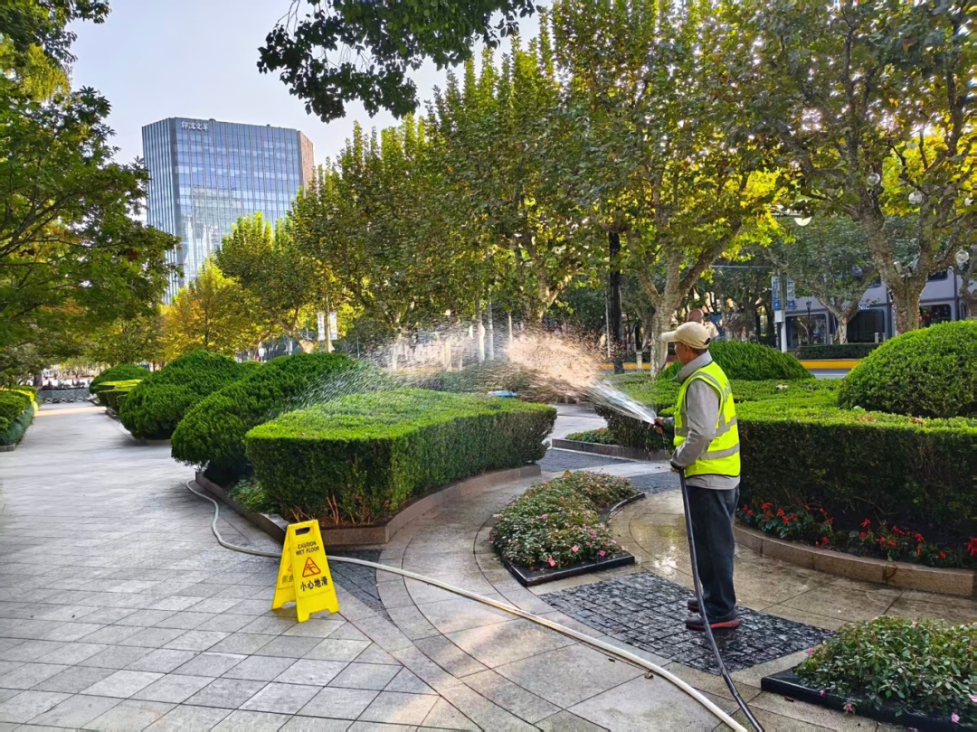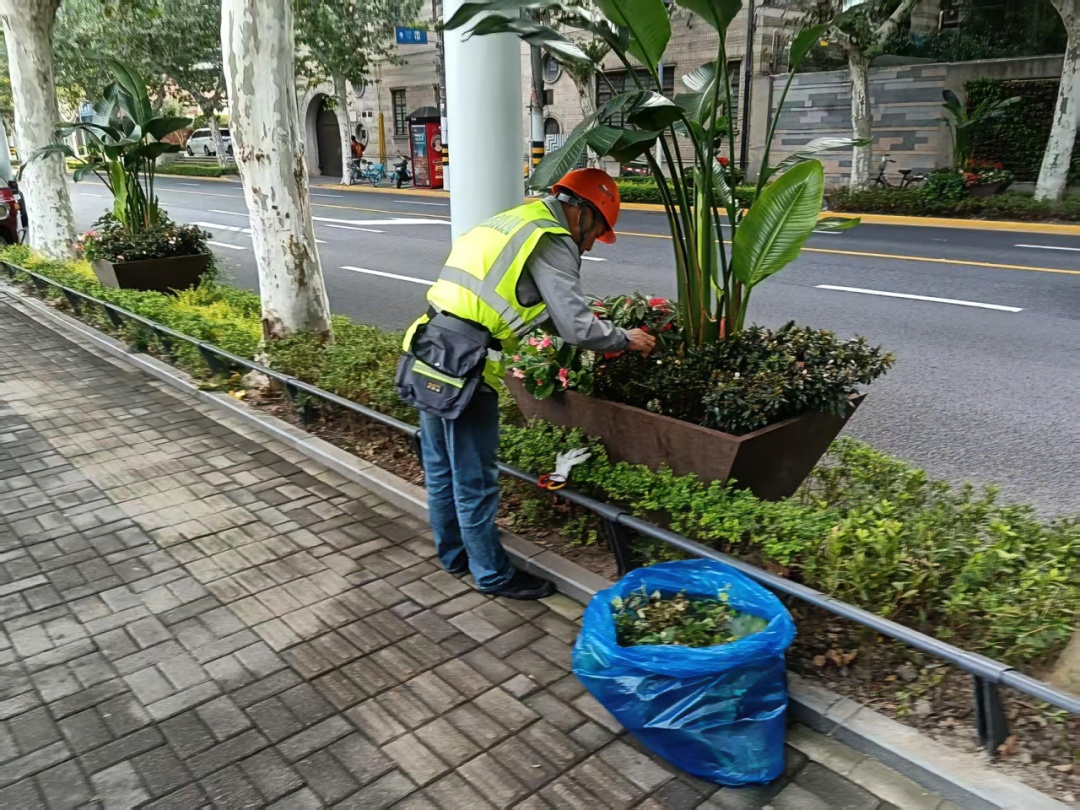 静安园林公司围绕南京西路、陕西北路商圈等重点保障区域,全面开展绿化环境巡查与整治工作,加强日常保洁,及时补植裸露区域花卉,修剪枯枝残花,确保沿线绿化景观整洁优美、形态协调。
