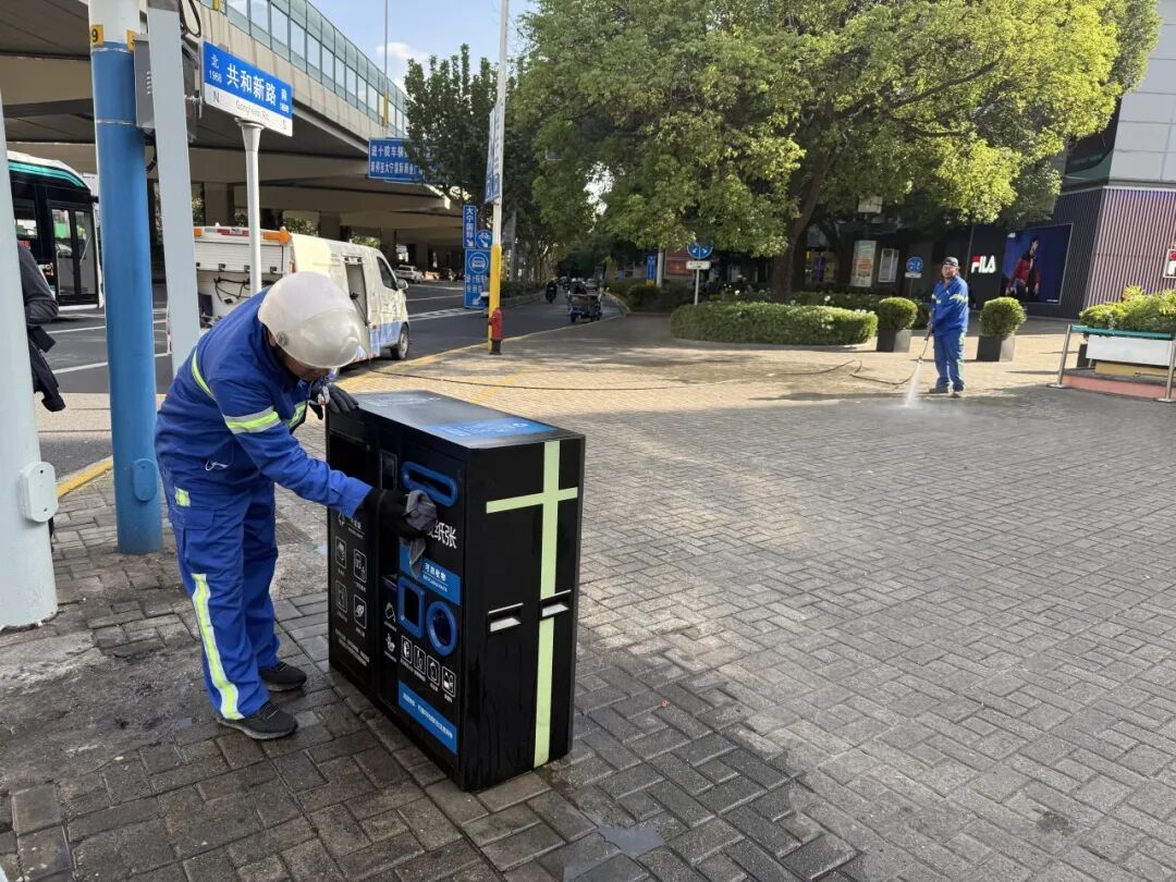 清道作业采取“机械深度冲洗+人工精细保洁”协同模式,对主干道、商圈、轨交站点等重点区域实施全覆盖冲洗与“地毯式”清理,同步加强废物箱等城市家具的擦拭维护,确保无卫生死角。
