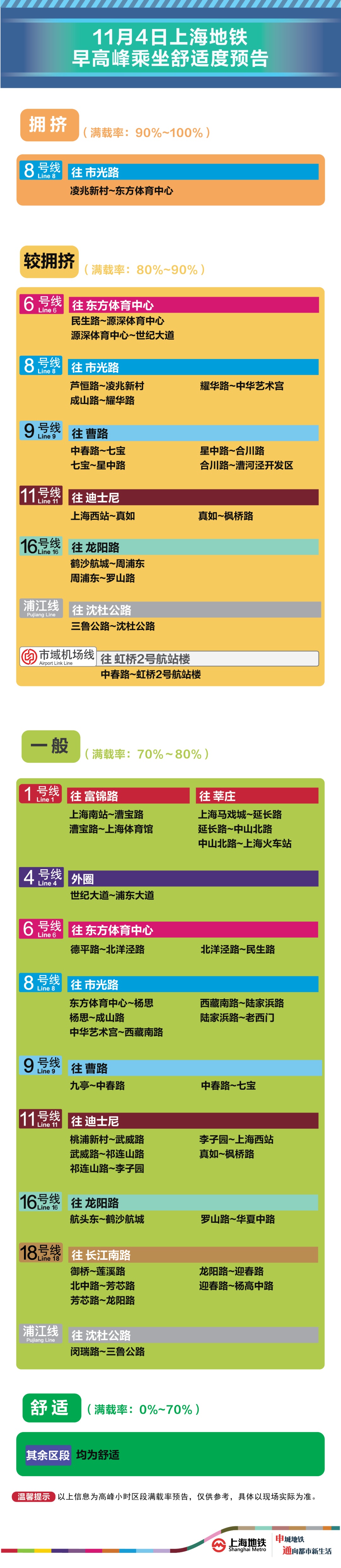 为提升上海地铁早高峰期间出行服务水平,提升乘客乘坐体验,上海地铁向乘客提供乘坐舒适度预告,方便乘客提