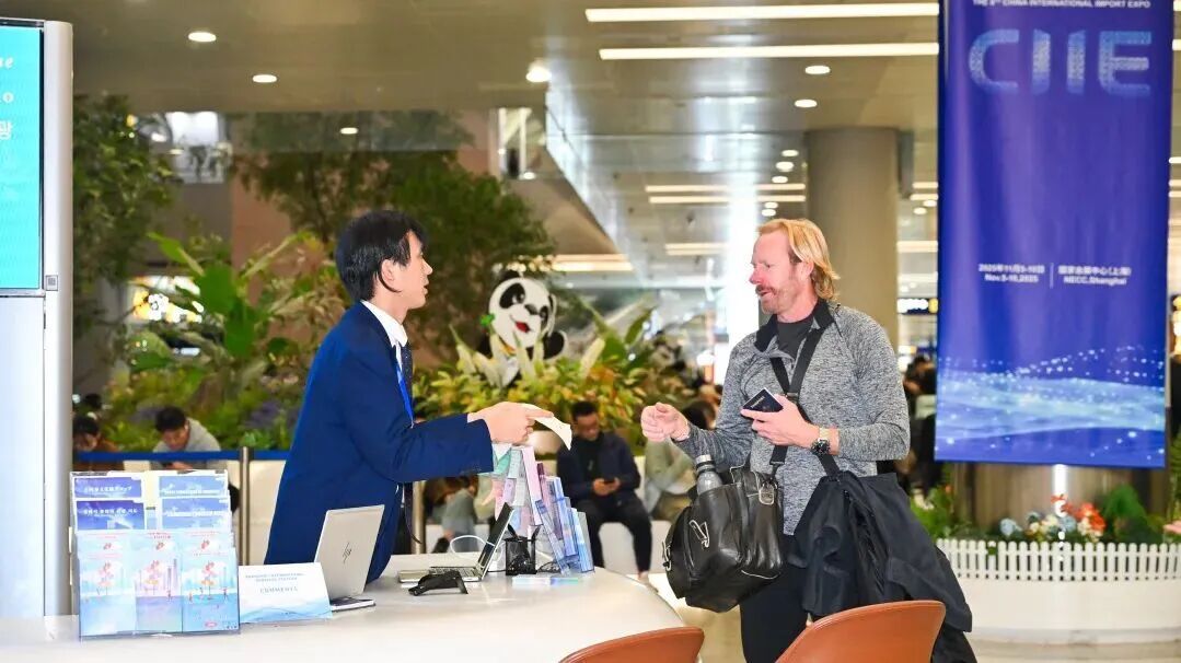 10月30日,位于浦东、虹桥两大机场到达公共区域的3处进博会专用服务中心全面启用,服务中心在进博会期间为参会宾客提供多国语言翻译、信息查询、交通引导、应急帮助等服务。