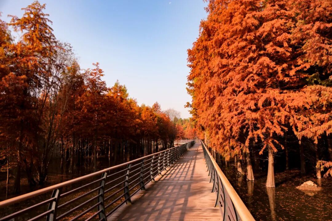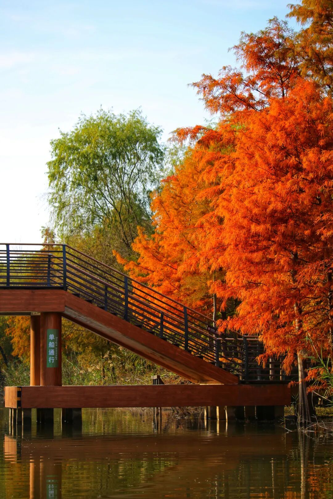 西沙湿地水森林游船是观赏杉树的绝佳方式,景区特别疏浚了34条潮沟,开通了一条总长2014米的水路,沿岸主要种植有落羽杉、池杉等植物。乘船缓缓驶入深处,可以看秋光层叠、红影婆娑,感受这个季节独有的温柔馈赠。