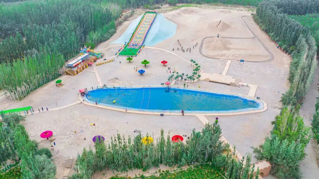 公园位于泽普县依玛乡色日克乌依村。如今,这里在黑水营文化遗址的历史底蕴基础上,又开创了乡村旅游的新局面。游客们打开这里的方式有很多:喜欢刺激的可以玩彩虹滑道,从沙丘高处滑下;偏爱安静的则可以乘坐七彩小火车穿越公园欣赏美景;若是和家人朋友结伴而来,不妨去往露营区感受烧烤乐趣。