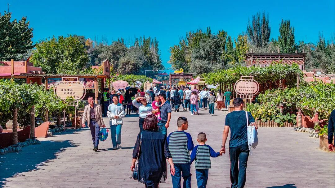 “在闵行援疆力量的帮助下,现在长寿民俗文化村的农家乐,经营得不错的,最高年收入超过20万元,对比以前翻了好几倍,村民们也真正享受到了文旅发展带来的红利。”金湖杨景区党工委委员、副主任热孜万古丽·卡德尔介绍。