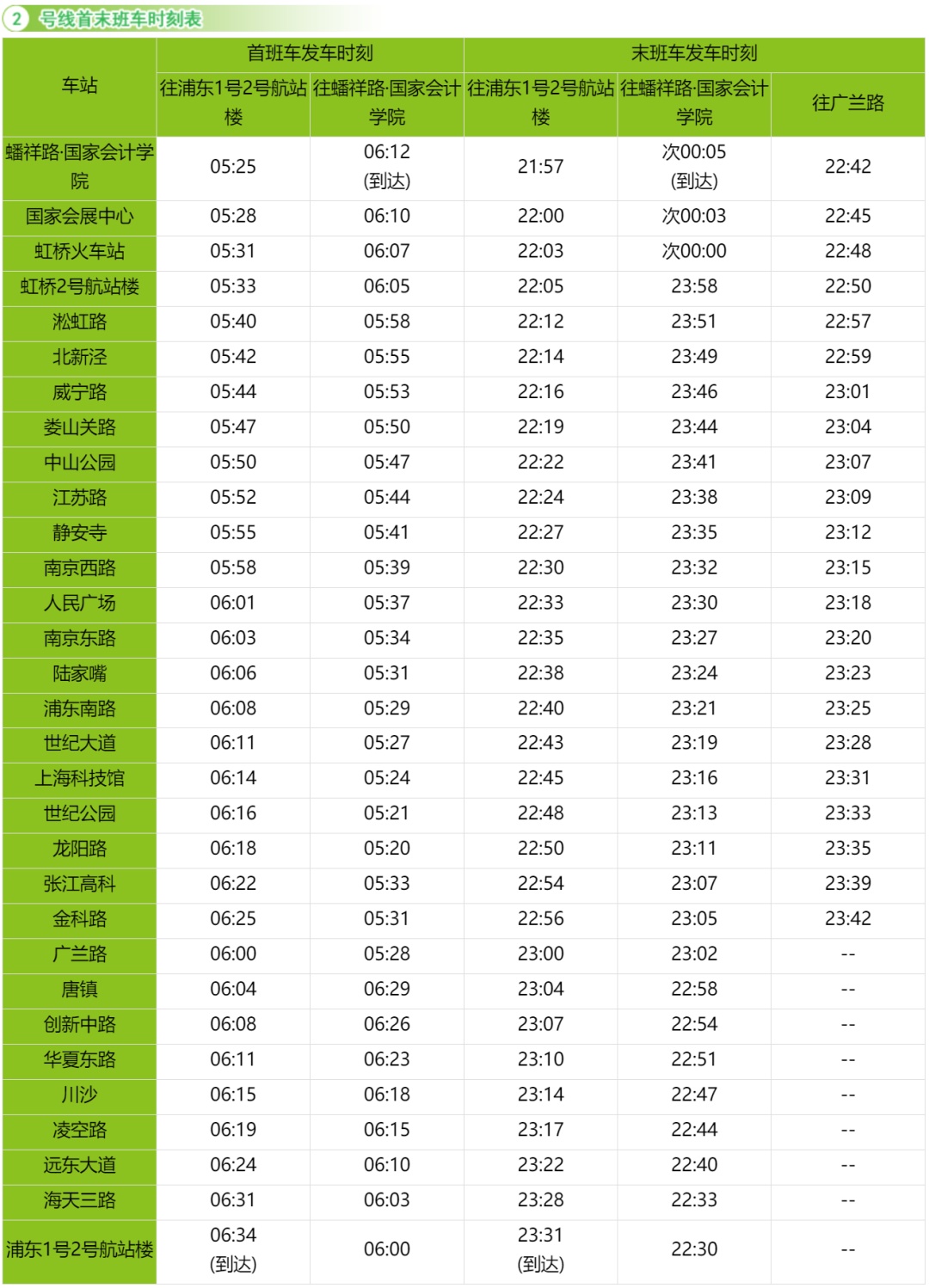 各位小伙伴请注意!随着11月1日首班车起,2号线蟠祥路·国家会计学院站开通初期运营,上海地铁全网首末班车时刻表也随之更新。请大家收藏~详见↓