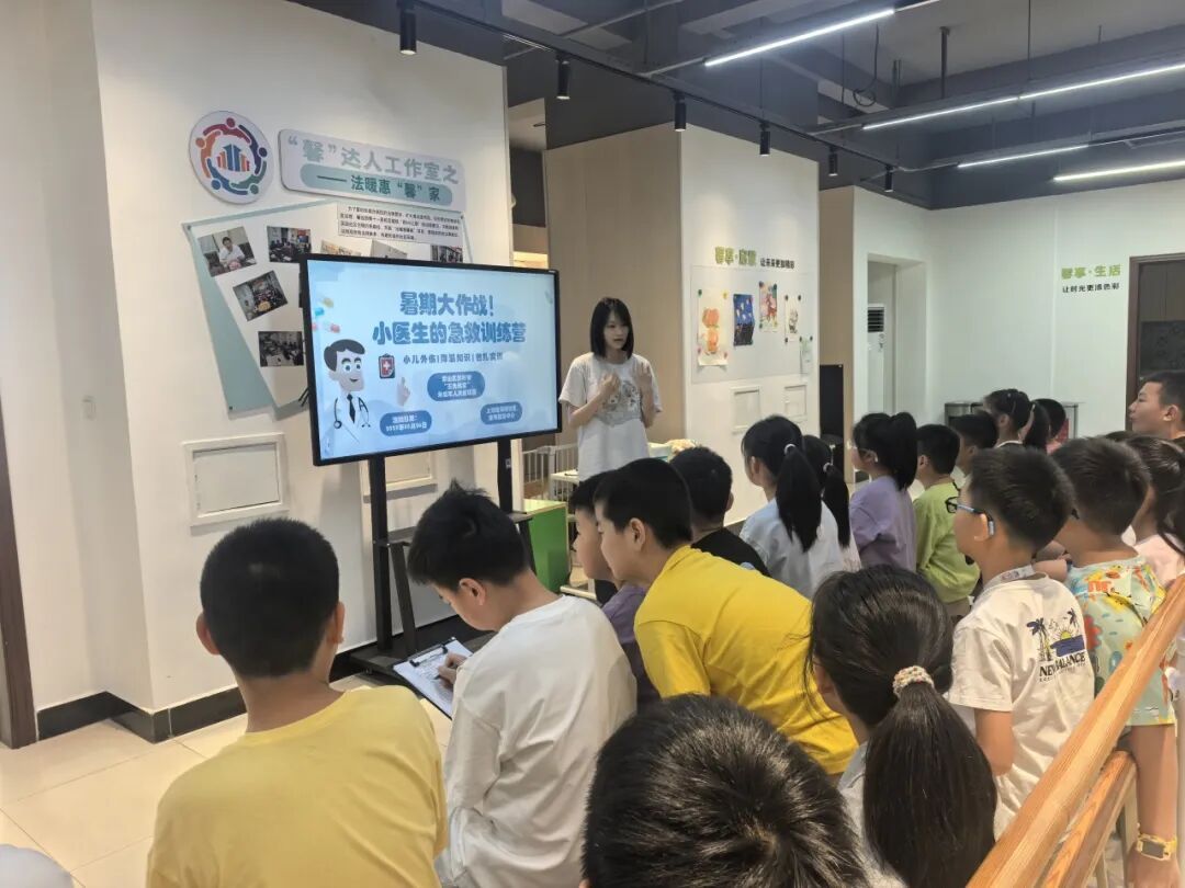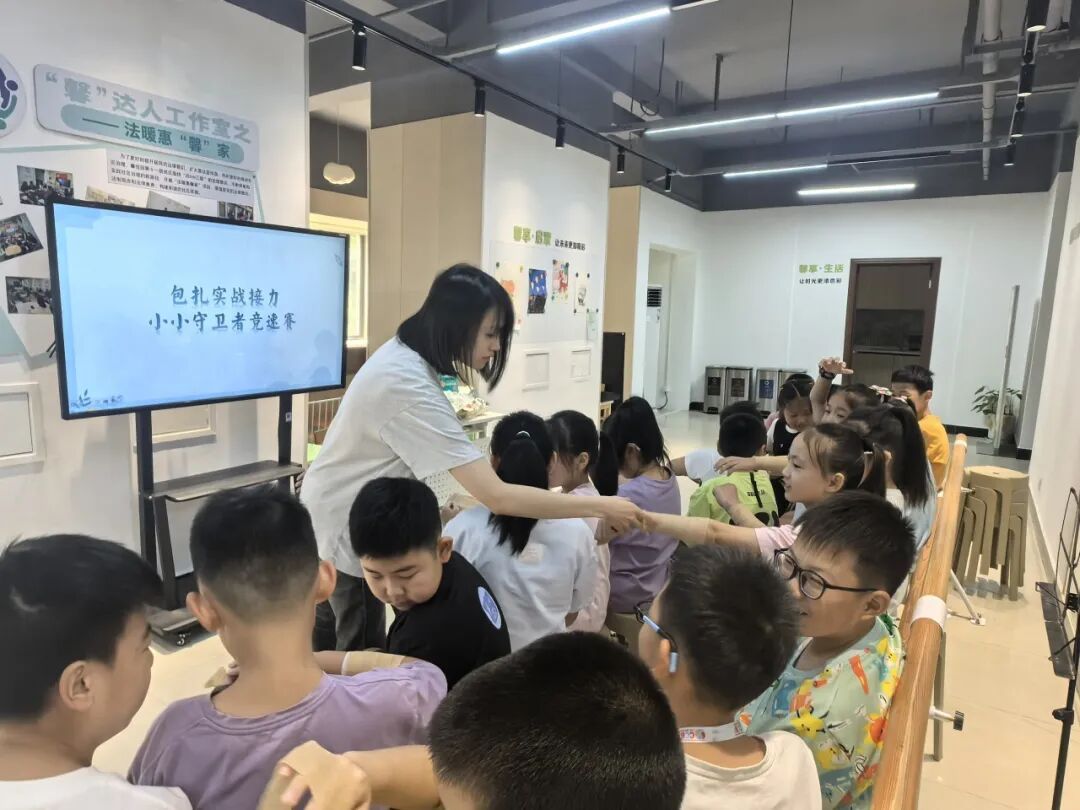 “小儿外伤”教学里,老师详细讲解擦伤、鼻出血、关节扭伤的处理方法;“实用包扎术”板块介绍环状、螺旋包扎法的适用场景与操作要点。活动还设置“机智抢答”“包扎实战接力赛”,通过问答形式巩固知识,通过竞速实践提升包扎技能,让小朋友在互动中掌握急救要点。此次活动既丰富了孩子们的课余生活,又为家校和社区安全增添了“防护盾”。