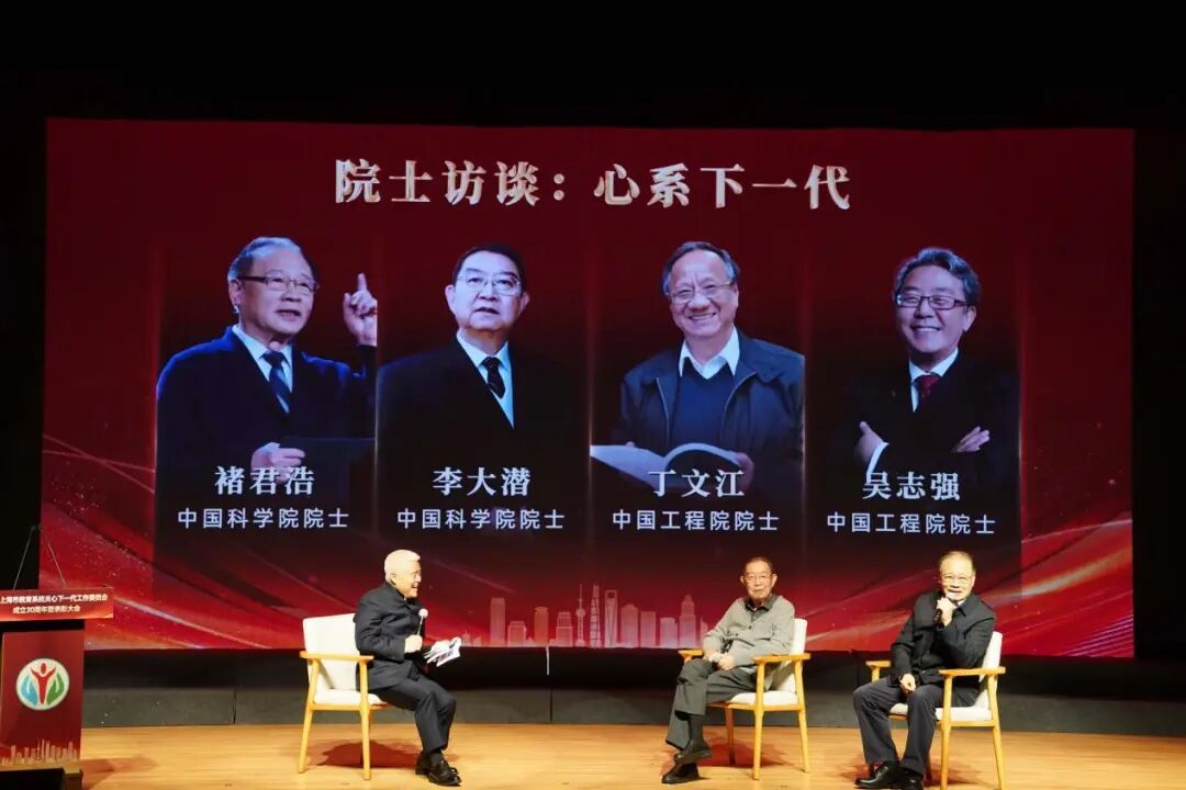 第二篇章“枫叶正红”集中展现“五老”风采与育人力量。少儿歌舞《阳光下的花朵》活泼灵动,用童真与活力彰显新一代青少年的蓬勃朝气。“五老故事”分享环节中,闵行区教育系统关工委赵妙娟讲述《光荣在党五十年 一片丹心育新人》,同济大学关工委金正基分享《做青年的朋友》,上海市劳模协会工会管理学院劳模学员分会会长王连云阐释《劳模精神永放光芒》,上海交通大学博士生蒋函静以《读懂中国 饮水思源》传递青年一代对“五老”的感恩之心,生动诠释“老少牵手、共促成长”的育人成效。主题为“心系下一代”的院士访谈引发广泛共鸣,中国科学院院士李大潜、褚君浩与中国工程院院士丁文江、吴志强结合自身科研与育人经历,寄语青少年立大志、明大德、成大才,勇担时代重任。