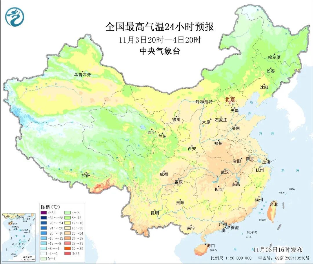 11月5日(周三):多云到阴局部短时小雨,16~22℃
