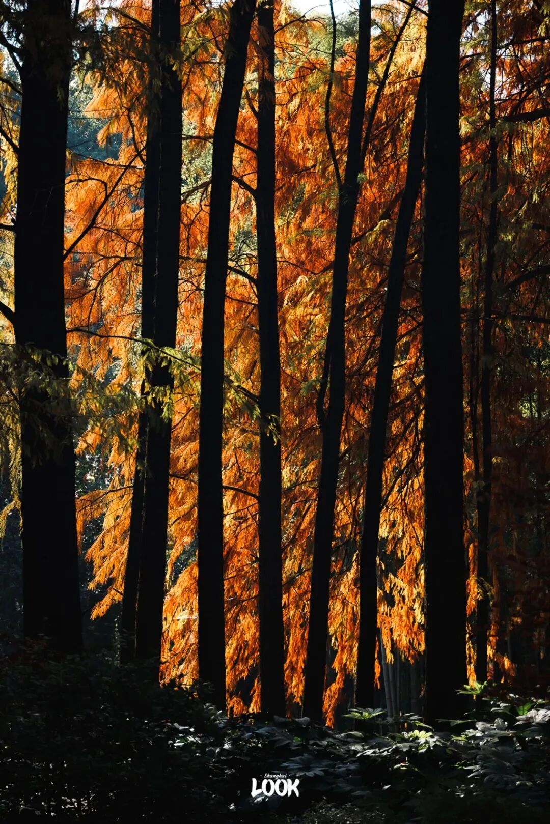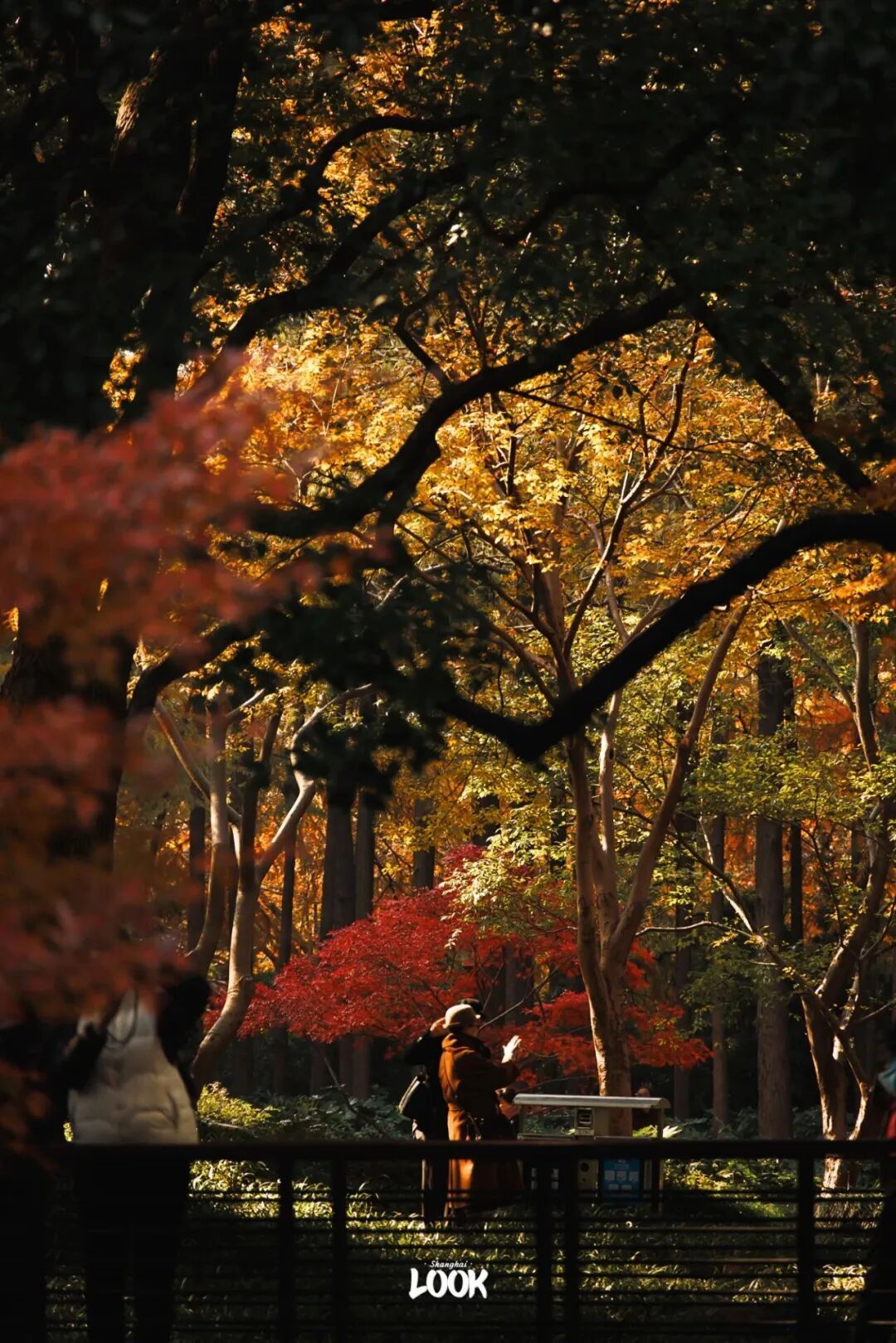 延中广场公园里的红枫银杏早已在上海小公园届火出圈了,除了这些,在这里其实也可以偶遇落羽杉。穿过“长桥碧水”,沿着绿地一路漫步到池边,便能到达绝佳的杉树赏景位。
