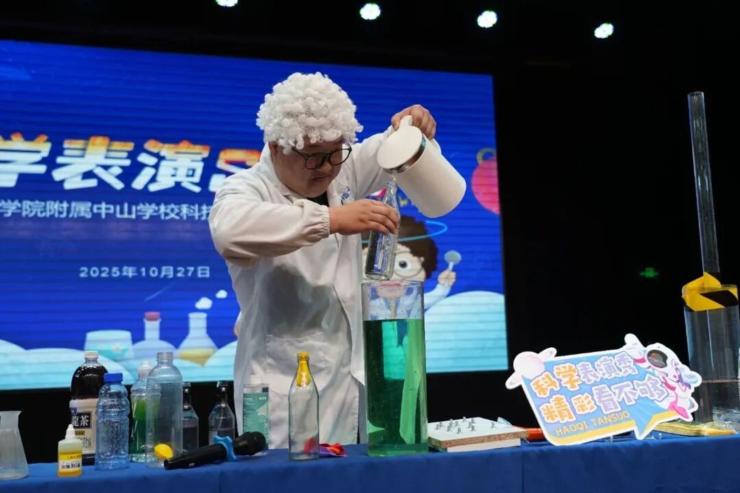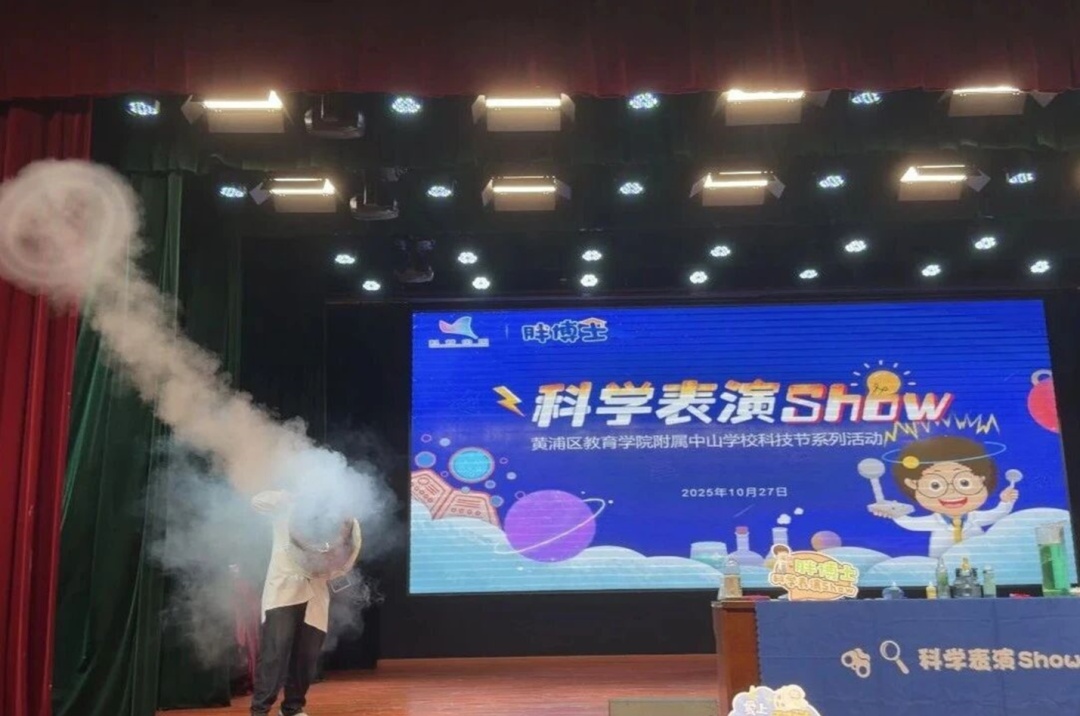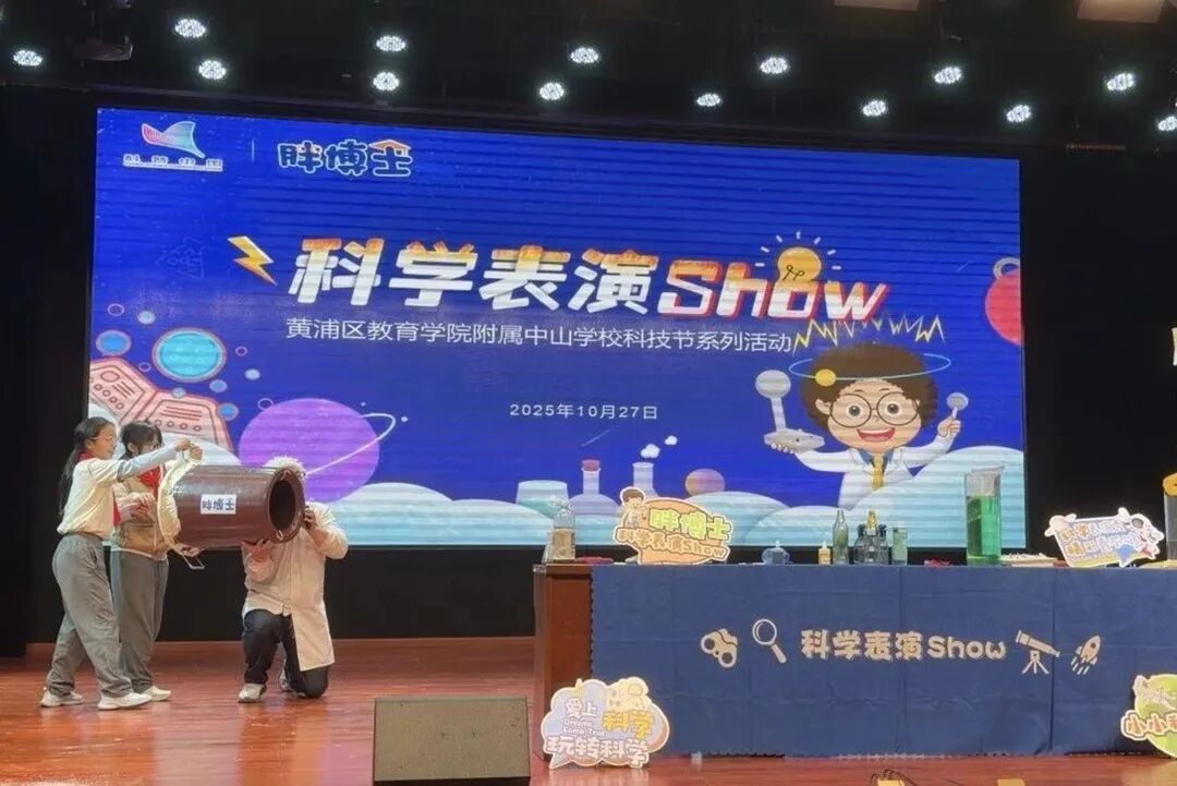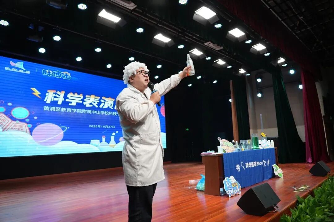 近日,黄浦区教育学院附属中山学校以“秀出科学奇妙 问启科创未来”为主题的科技节火热进行,其中一场超吸睛的沉浸式科普表演秀在校园内掀起热潮,为全校师生带来了一场别开生面的科学盛宴。