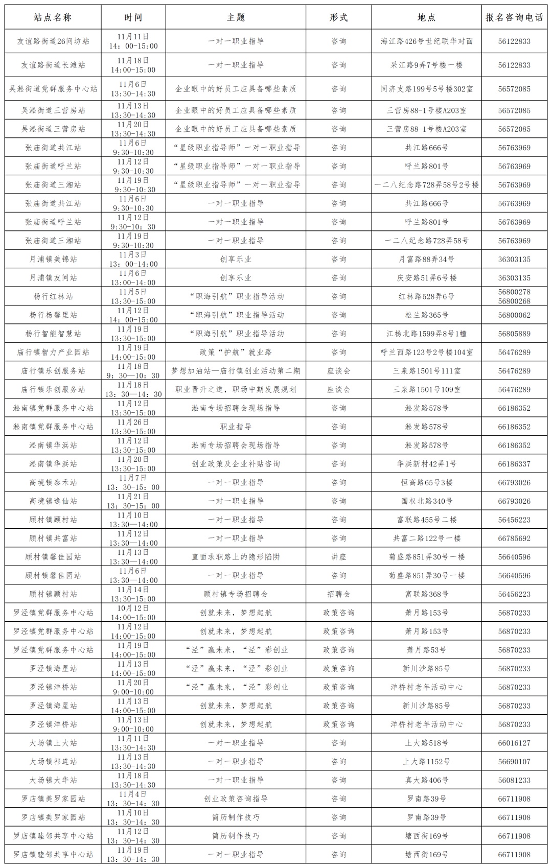 宝山区全力打造“15分钟就业服务圈”,扎实推进社区就业服务站点建设,切实打通就业公共服务“最后一公里”。目前,全区12个街镇均已设立标准化服务站点,为居民提供便捷高效的“一站式”就业公共服务。以下是各站点活动安排表,欢迎广大居民积极参与⬇