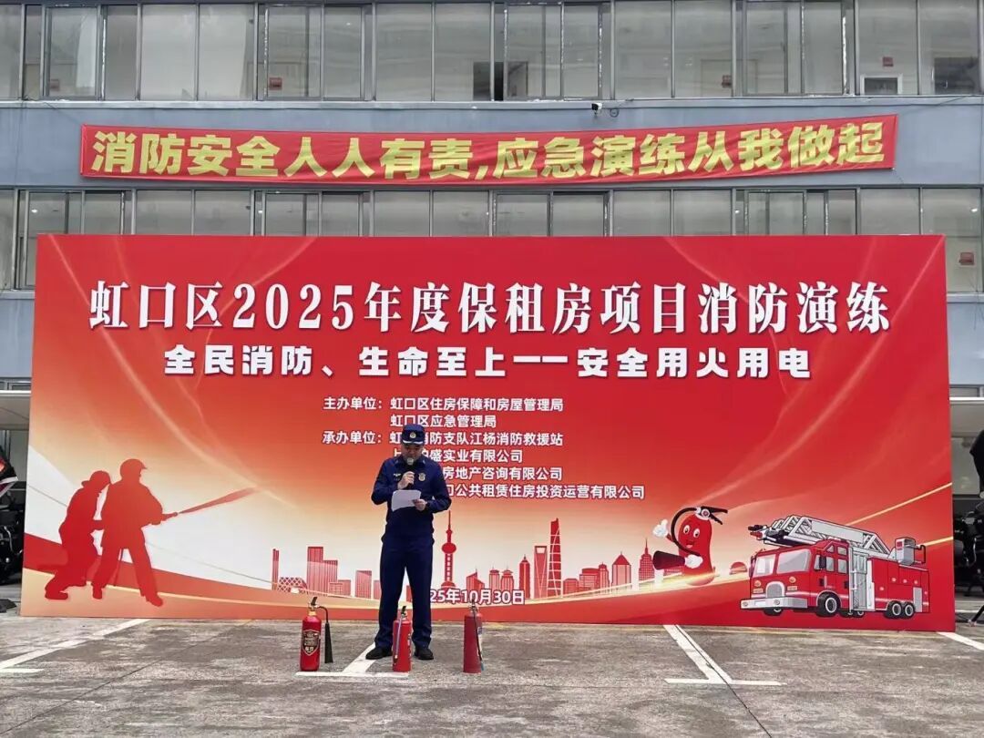此次演练由虹口区住房保障和房屋管理局和区应急管理局联合主办,虹口消防支队江杨消防救援站、上海市虹口公共租赁住房投资运营有限公司、上海虹口房地产咨询有限公司及上海柏盛实业有限公司共同承办,全区40家保租房运营机构共70余人参与,通过“理论+实战”模式,全面提升消防安全应急处置能力。