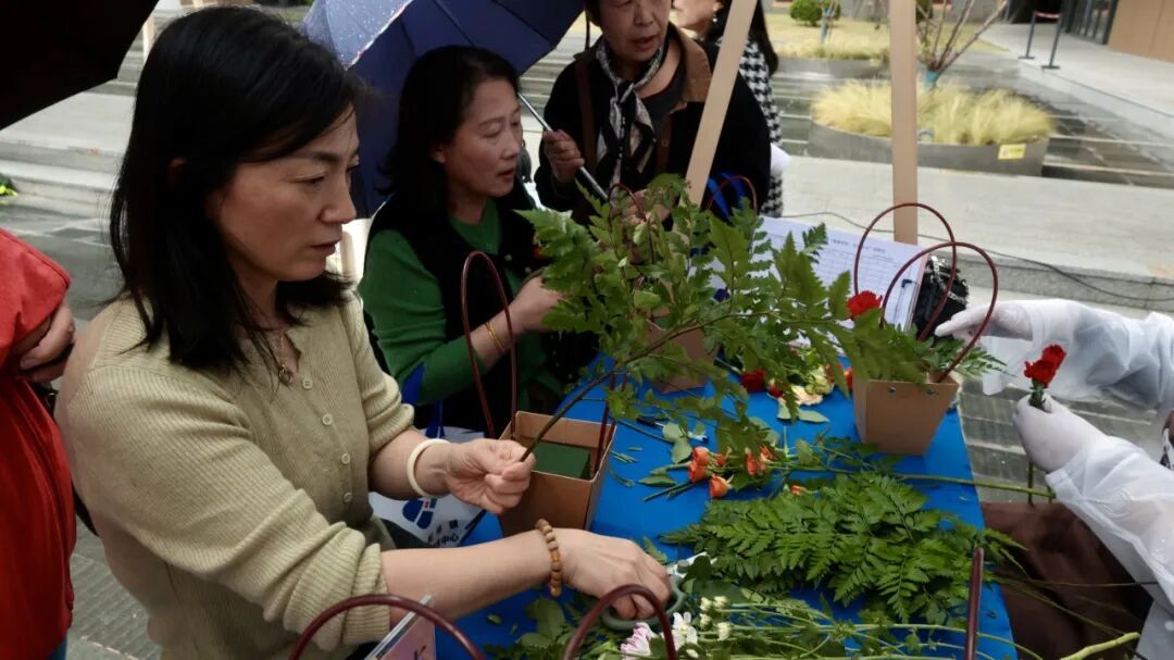 最受大家欢迎的当属“职业技能体验”摊位。活动现场分别设有插花师、西点师和咖啡师3种不同的特色体验专区,每个专区前都围满了跃跃欲试的群众。老师现场示范教学,从插花的色彩搭配、西点的塑形技巧到咖啡的拉花手法,一步步细致讲解、手把手指导。大家认真聆听、亲手实操,在沉浸式体验中感受职业技能的魅力,现场氛围热烈又充实。