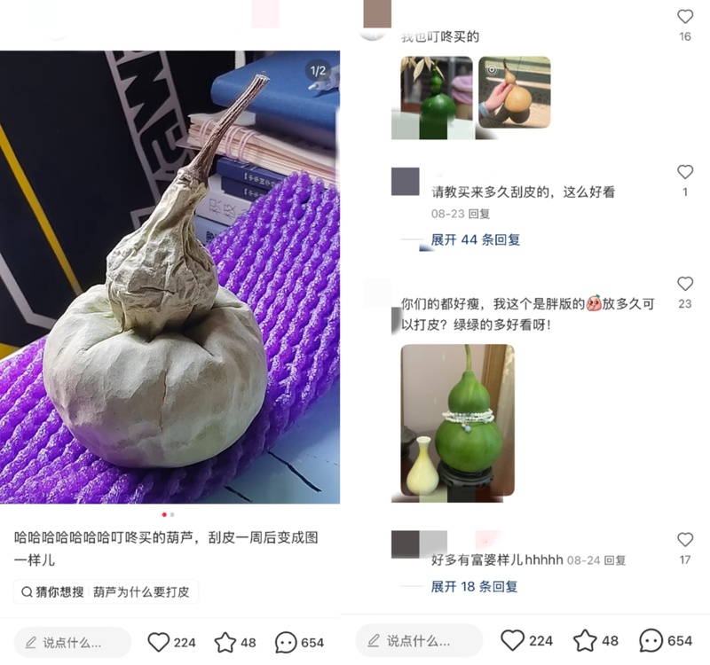 更重要的是,相比于传统文玩,这些商品足够有质价比:一个文玩玉米售价折后只要9块9,一个青皮葫芦只要16.9元,“人类猫薄荷”山胡椒木根也只要9.9元。